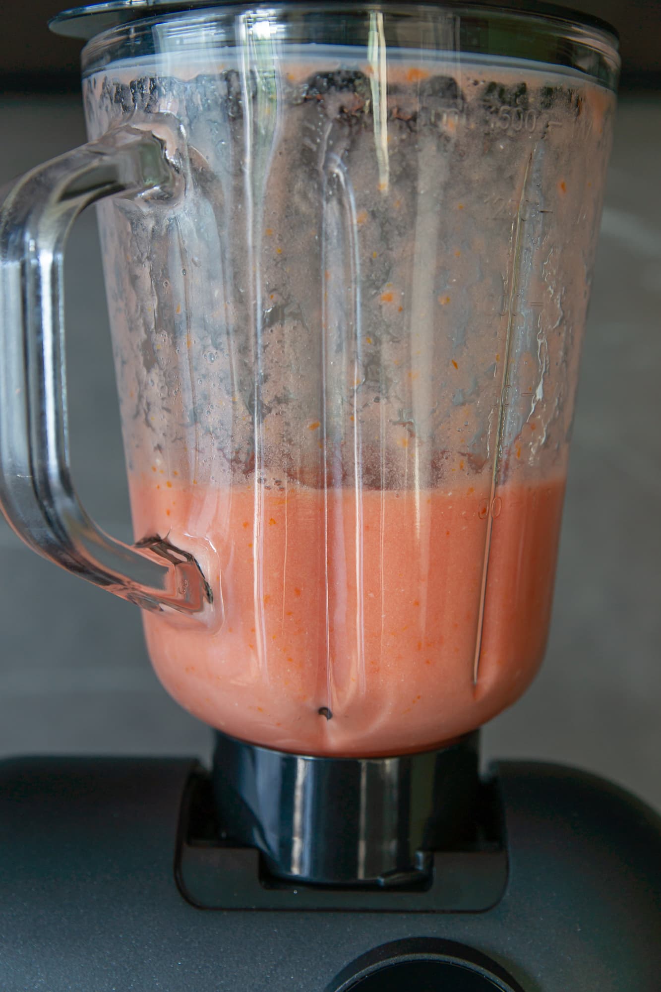 Томатная масса получилась взбитой и достаточно воздушной, совсем мелкие кусочки кожицы и семена присутствовали, но в минимальном количестве.