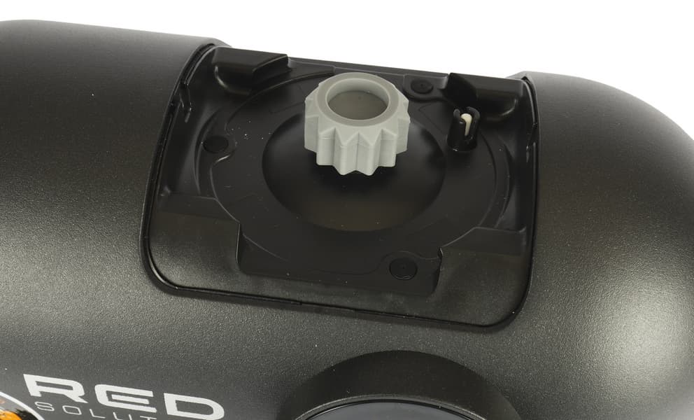В торце рабочей головы под пластиковой заглушкой скрыто гнездо для кувшина блендера. Углубление для установки кувшина пластиковое, а съемная шестерня из плотной резины.