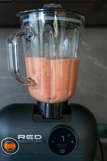 В кувшин поместили 450 г нарезанных не очень мелкими дольками помидоров и включили рекомендуемую для блендера 7-ю скорость. Уже на 5-й секунде томаты превратились в пюре, но кусочки шкурки были сильно заметны. Через 1 минуту мы остановили прибор.