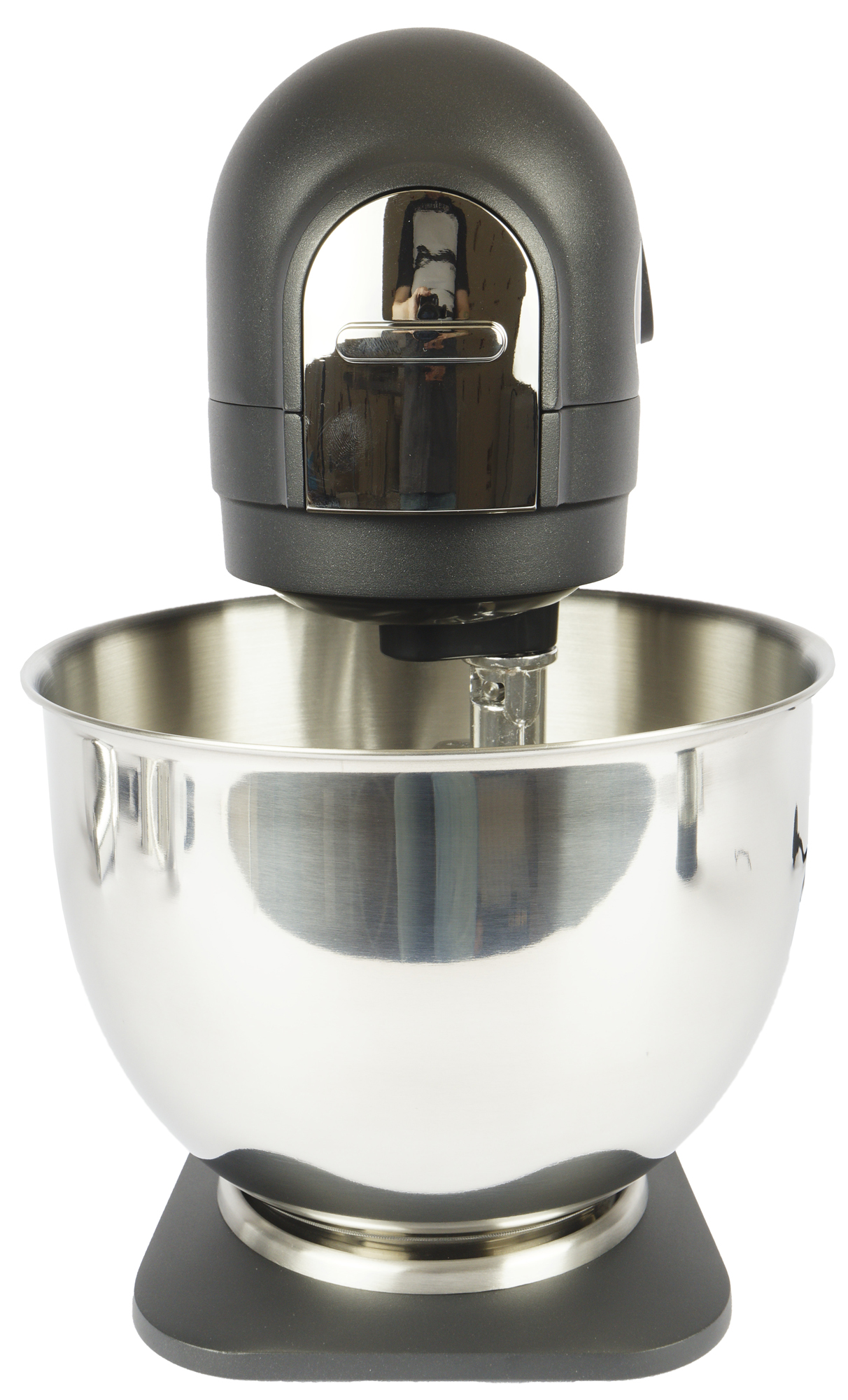 Красивая кухонная машина в металлическом корпусе с успехом прошла все испытания и на деле доказала свою эффективность. Многофункциональное устройство в качестве планетарного миксера запросто взбивает 80 г белков и так же с легкостью вымешивает килограмм тугого теста.