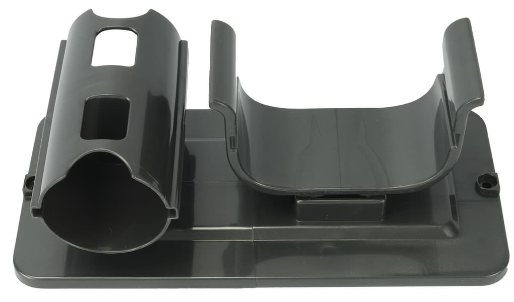 Весьма несложная конструкция и у входящего в комплект настенного крепления. Оно крепится к стене двумя винтами и позволяет хранить пылесос и обе немоторизованные насадки.