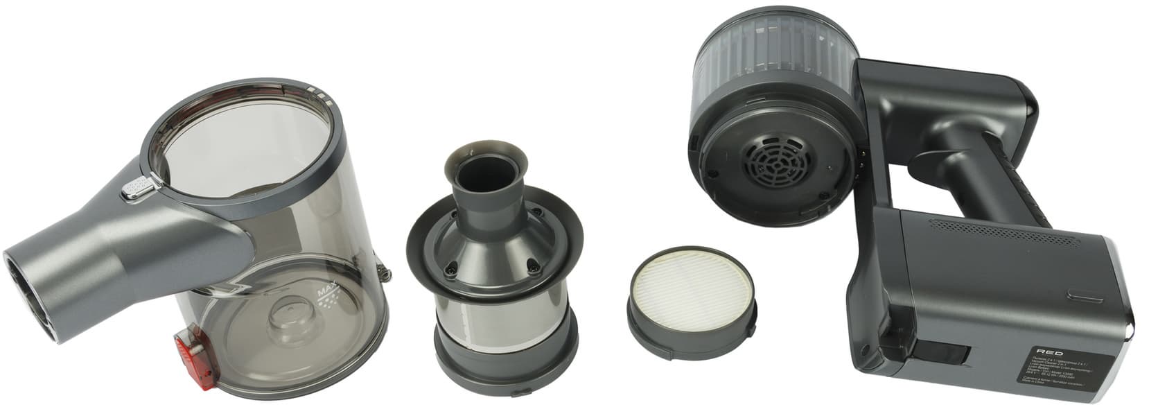 Схема, по которой спроектирован Red Solution V3080, — поперечная: блок циклонного фильтра с мусоросборником расположен перпендикулярно воздушному тракту.