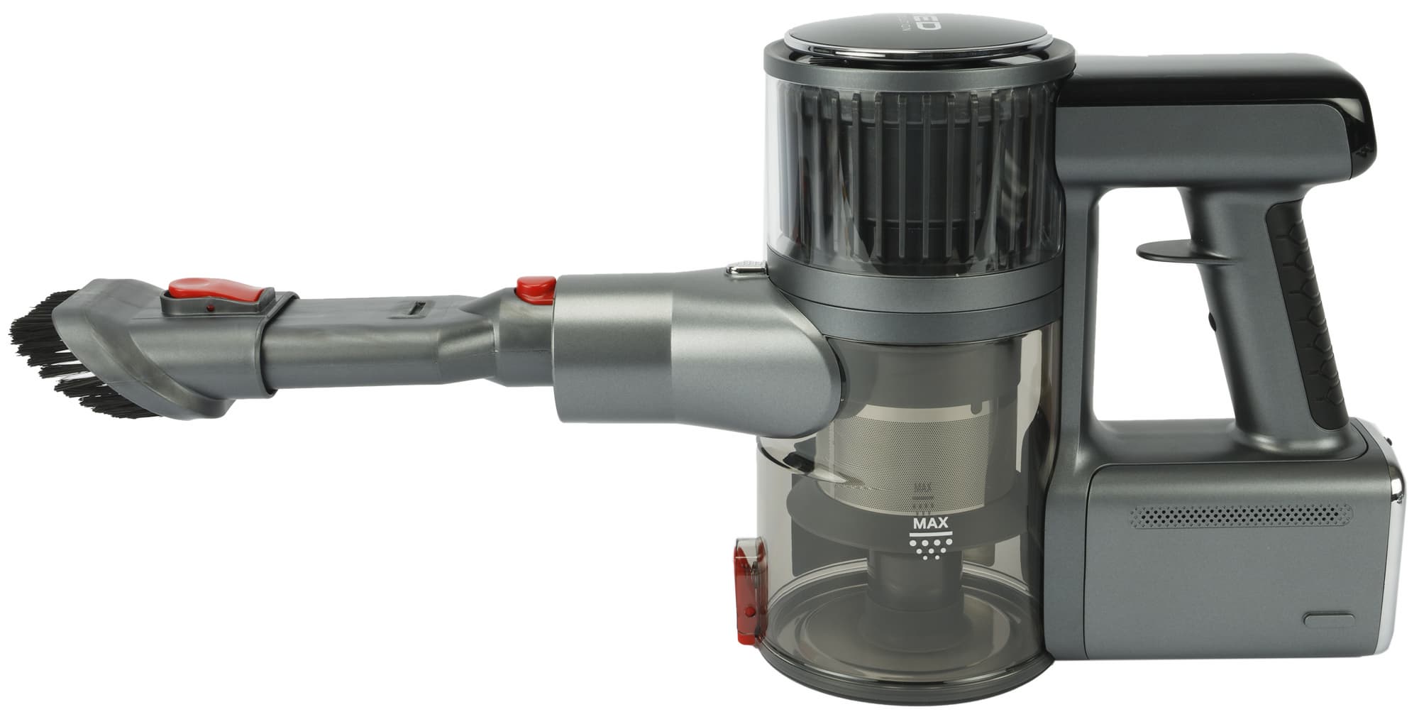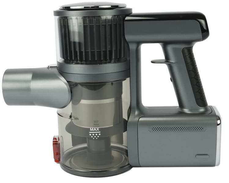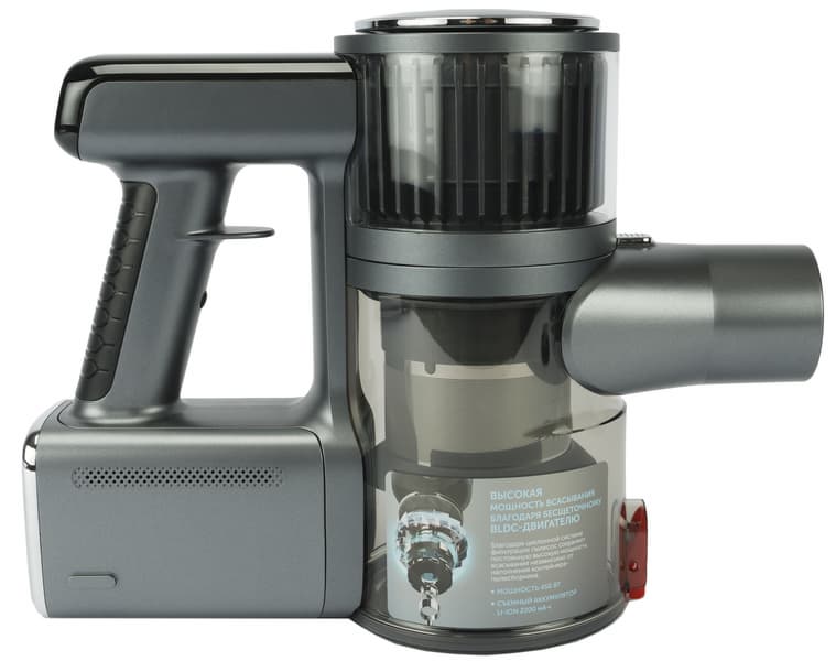 В ручной конфигурации использовать Red V3080 не менее удобно, чем в напольной. Но на качество уборки влияет довольно аскетичная комплектация. С этой моделью поставляются только две неэлектрифицированных насадки: щетка «2 в 1» и щелевое сопло традиционной конструкции. Тем, у кого дома есть животные, к примеру, захочется добавить к базовой комплектации электрощетку для мебели, а автовладельцам — приобрести гибкую гофрированную трубку для доступа к труднодоступным местам в салоне.
