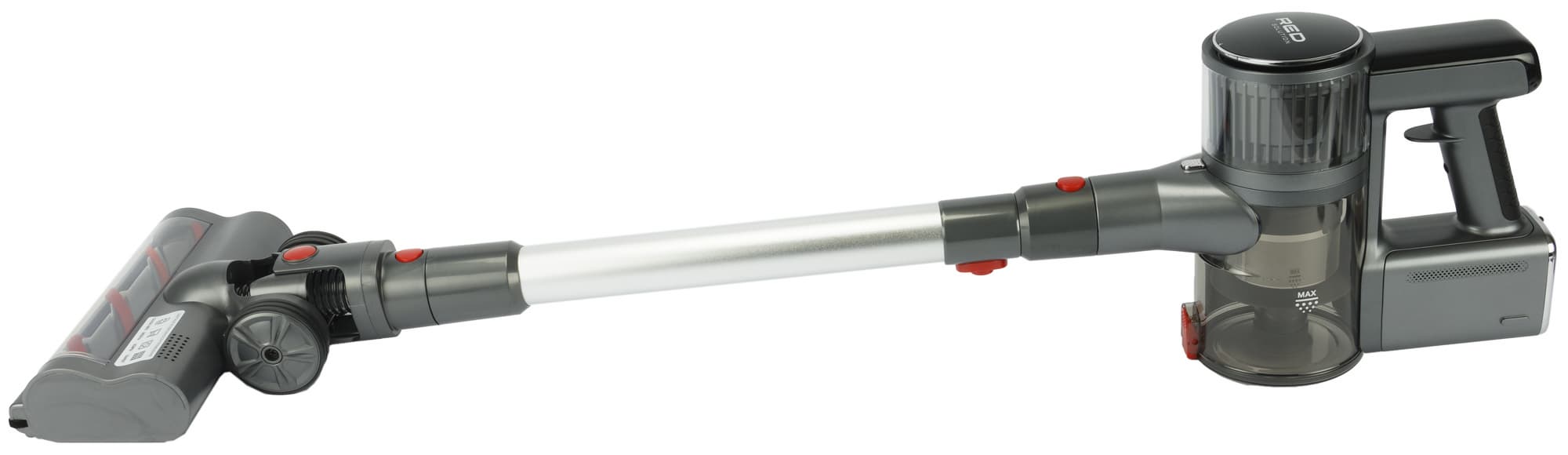 А вот и нет! Некоторые модели уже умеют так делать. Например, вертикальный аккумуляторный пылесос Red Solution V3080. Во время тестирования мы выясним, нужно ли вообще ручное управление мощностью, где у него кнопка, как с балансом и с фильтрацией.