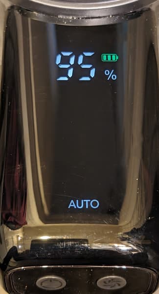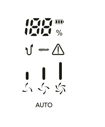 Крупные цифры на дисплее отображают текущий уровень заряда аккумулятора. Под ними при работе устройства горит индикатор выбранного режима: зеленый цвет обозначает минимум мощности, желтый — средний уровень, красный — максимальный. В автоматическом режиме включается индикатор «Auto».