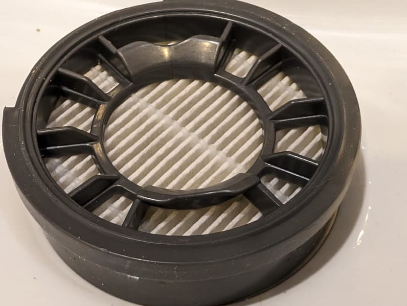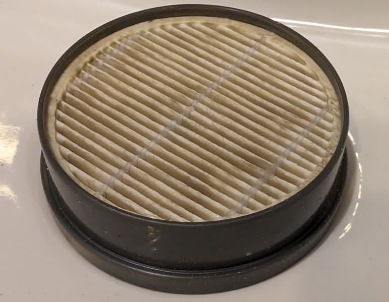 После нескольких интенсивных уборок на внутренней поверхности HEPA-фильтра заметны весьма незначительные следы пыли.