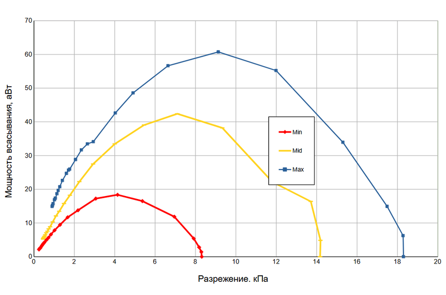 | Максимальная мощность всасывания | 60,7 аВт |