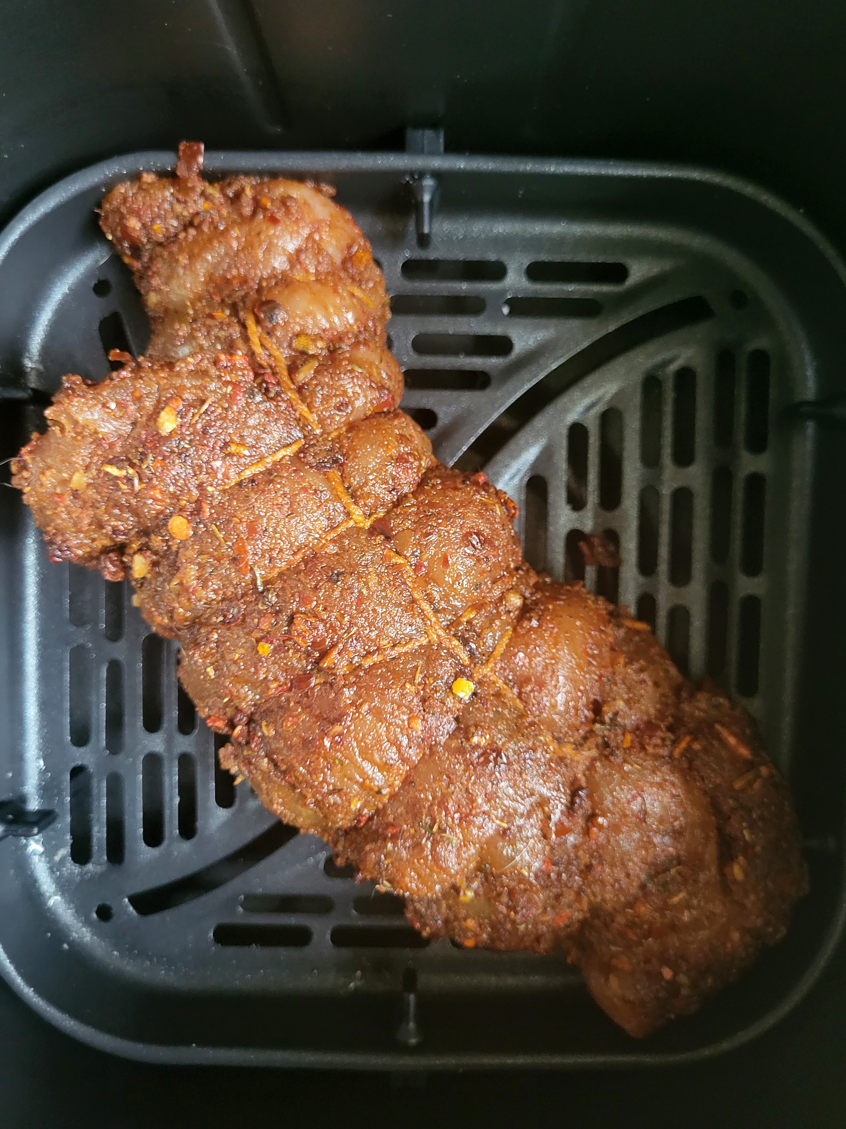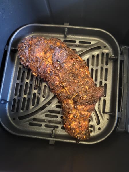 Далее мы отправили индейку в аэрогриль, выставив автоматический режим «Курица». Через 20 минут мясо было готово, но во всех рецептах приготовления пастрами сказано, что готовое блюдо необходимо оставить в духовке/аэрогриле до полного остывания. Потом блюдо следует завернуть в пергаментную бумагу и отправить в холодильник отдыхать часа на четыре.