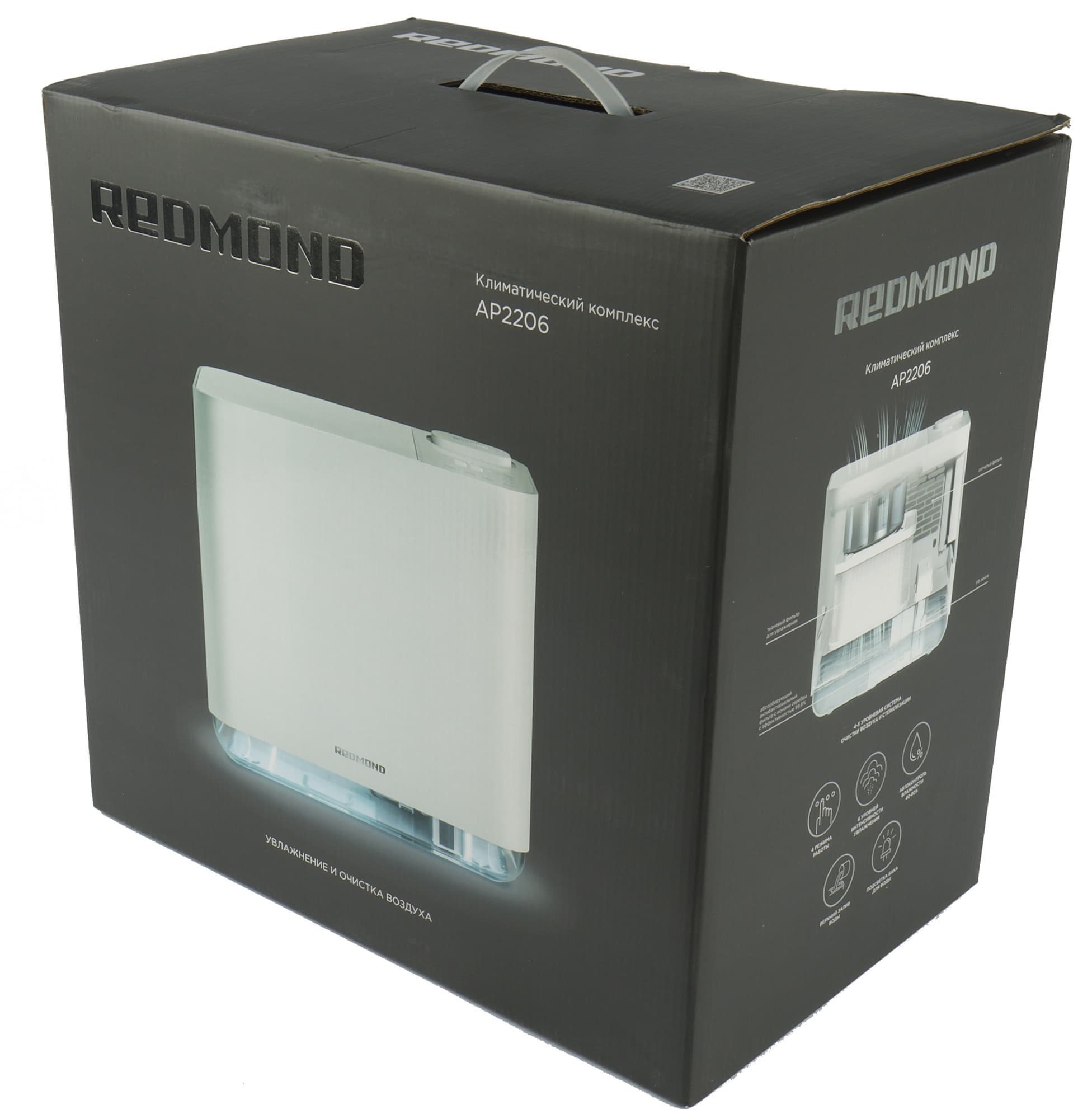 А если увлажнитель еще и с функцией очистки воздуха, тогда это называется климатический комплекс и полезнее вдвойне. Особенно если он, как Redmond AP2206, еще и облучает воду и воздух внутри себя ультрафиолетом. О том, что эта модель, прибывшая к нам на тестирование, еще умеет, мы тоже непременно расскажем.