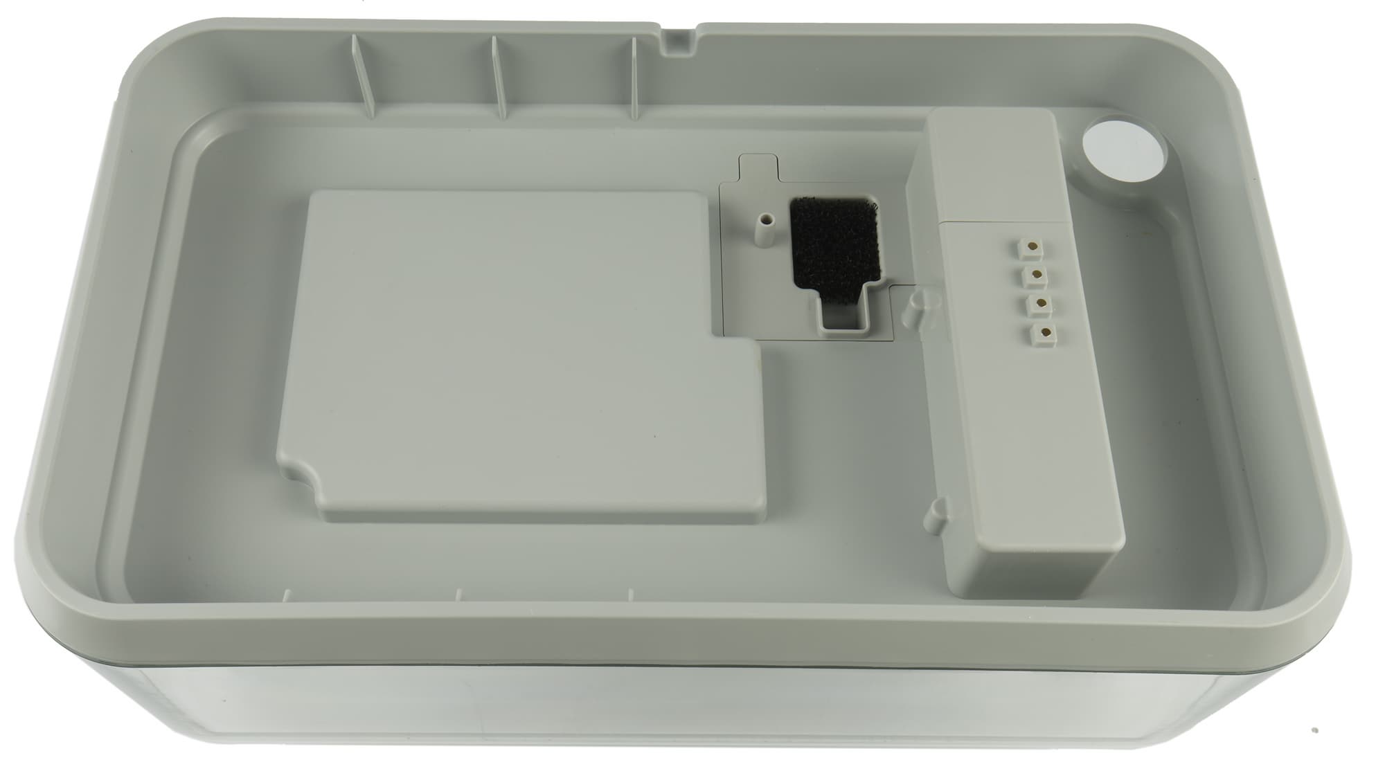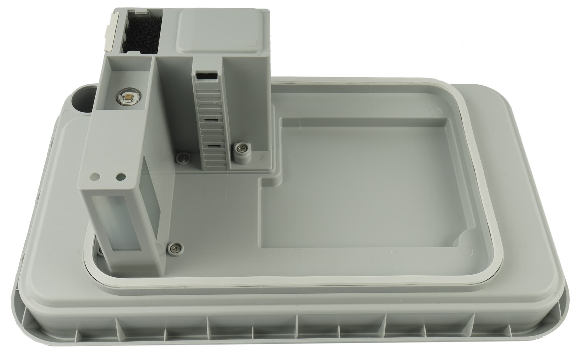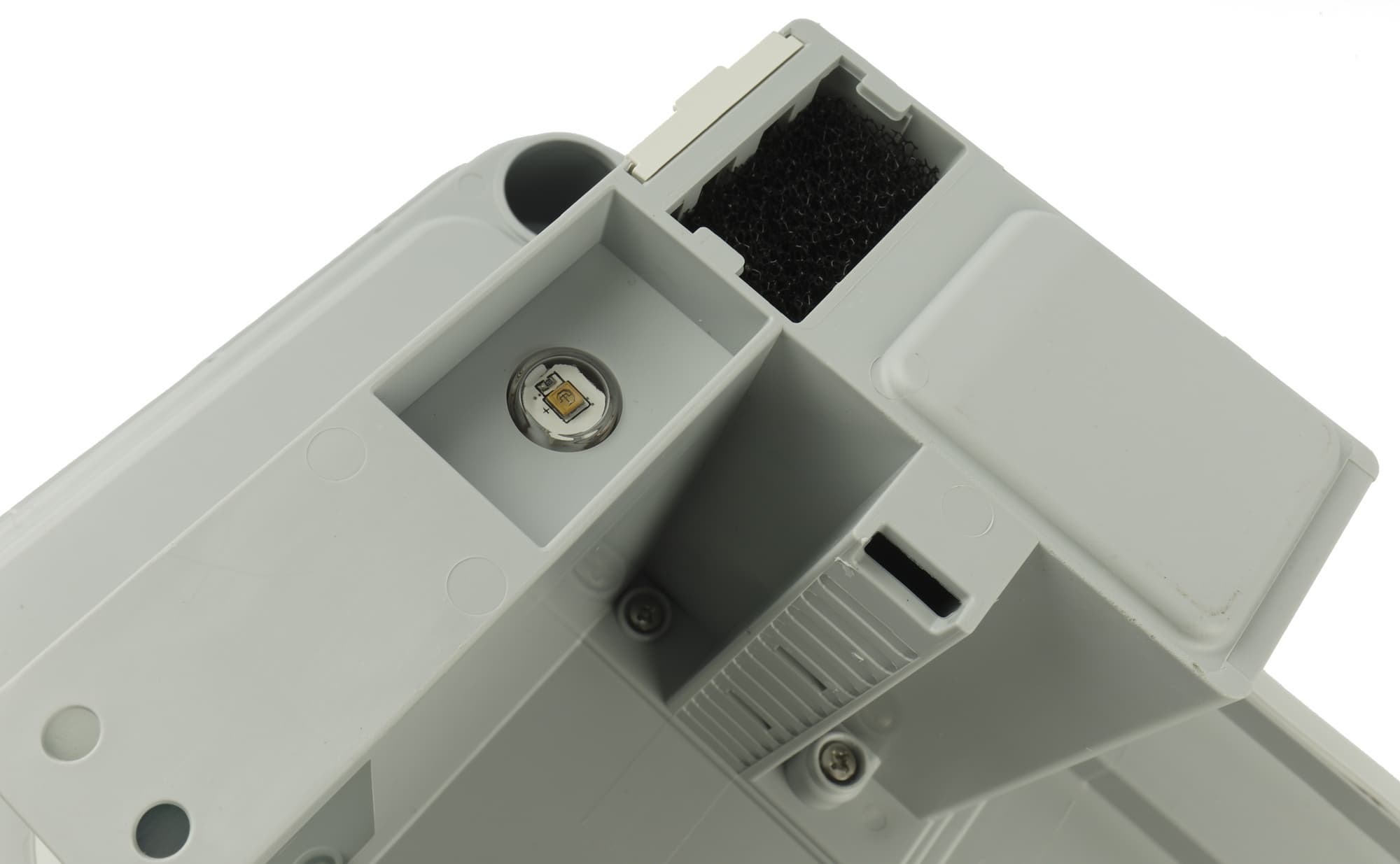 На нижней стороне все той же крышки можно видеть УФ-светодиод для облучения воды в емкости: ультрафиолет уничтожает болезнетворные бактерии и препятствует зацветанию.