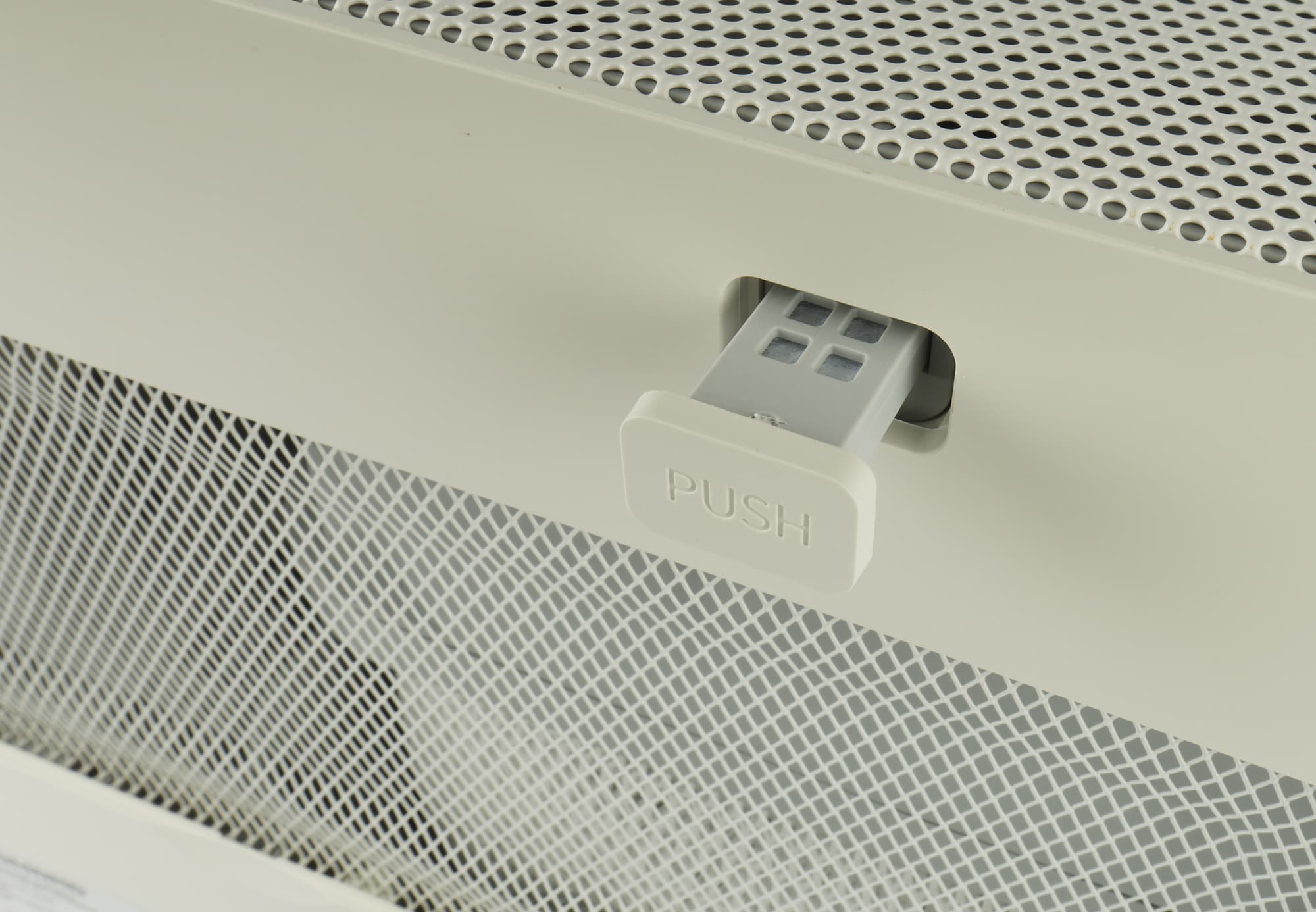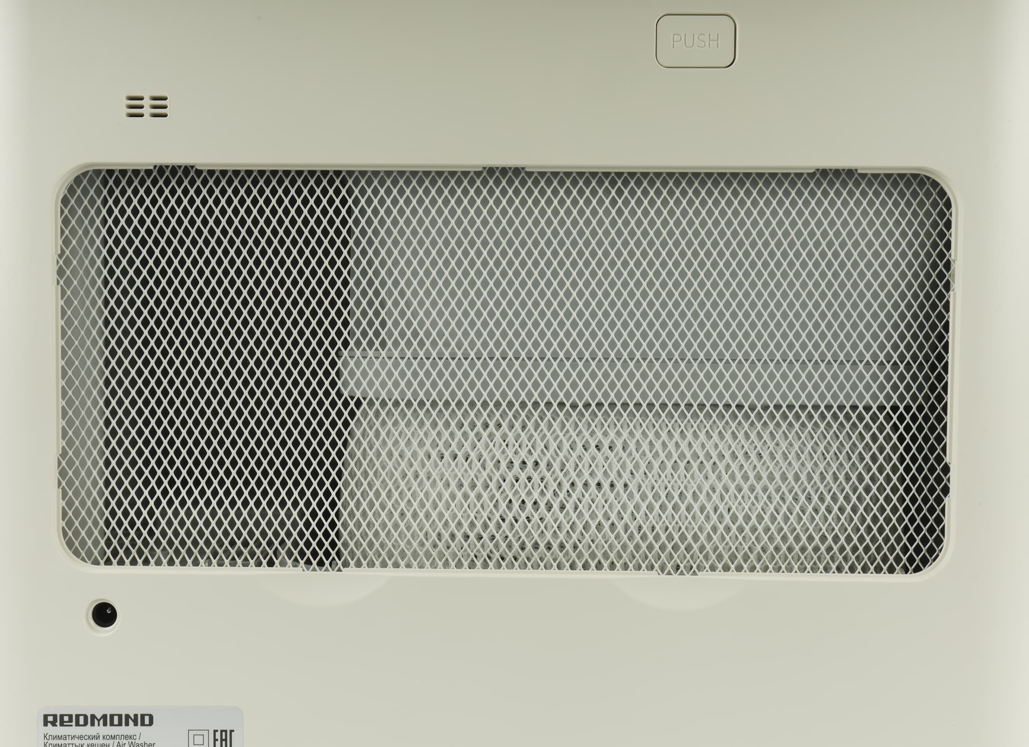 Кнопка «Push» нужна, чтобы извлекать контейнер для ароматизации воздуха. На пористый материал в пластиковой рамке пользователь может нанести несколько капель любимой душистой композиции: тогда комплекс будет не только очищать и увлажнять воздух, но и насыщать его приятным запахом.