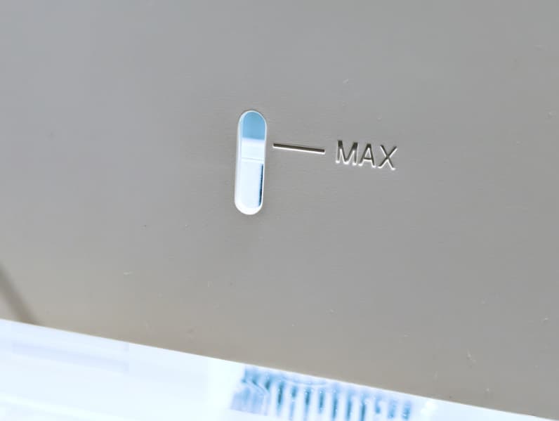 Уровень воды в резервуаре хорошо виден через полупрозрачный корпус бака. Отметка максимального заполнения размещена на окошке в задней стенке.
