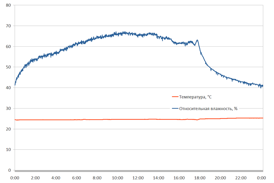 Для минимизации влияния внешних факторов мы плотно закрыли двери и окна. Между тестами помещение тщательно проветривали. Измерения температуры и влажности воздуха проводились автоматически, в комнате не было ни людей, ни животных.
