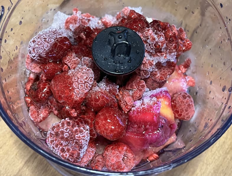 Для тестировании малой чаши измельчителя мы выбрали, пожалуй, самые сложные продукты — замороженные ягоды и фрукты.