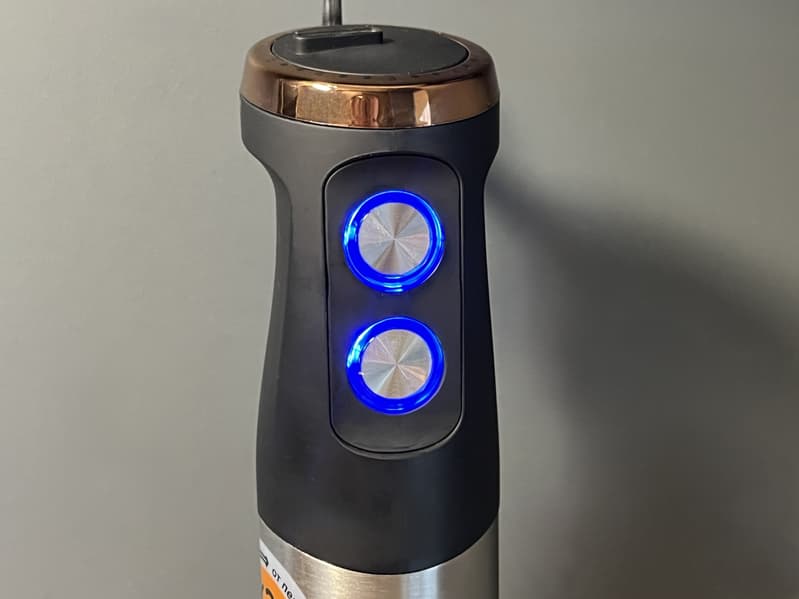 У подключенного к сети блендера под кнопками горит синий индикатор работы.