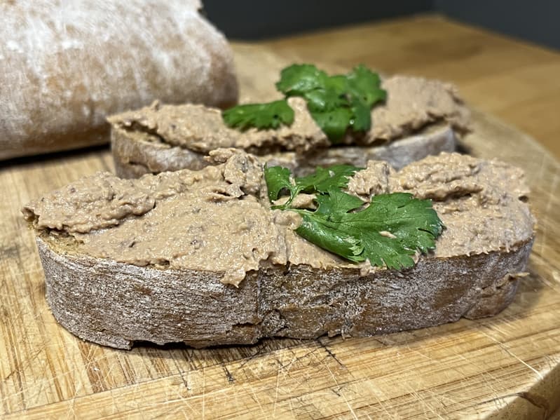 Бутерброды на свежей чиабатте с печеночным паштетом и кинзой улетели мгновенно.