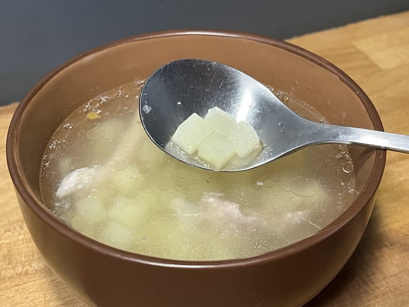 Получившиеся кубики использовали при приготовлении легкого куриного супа.