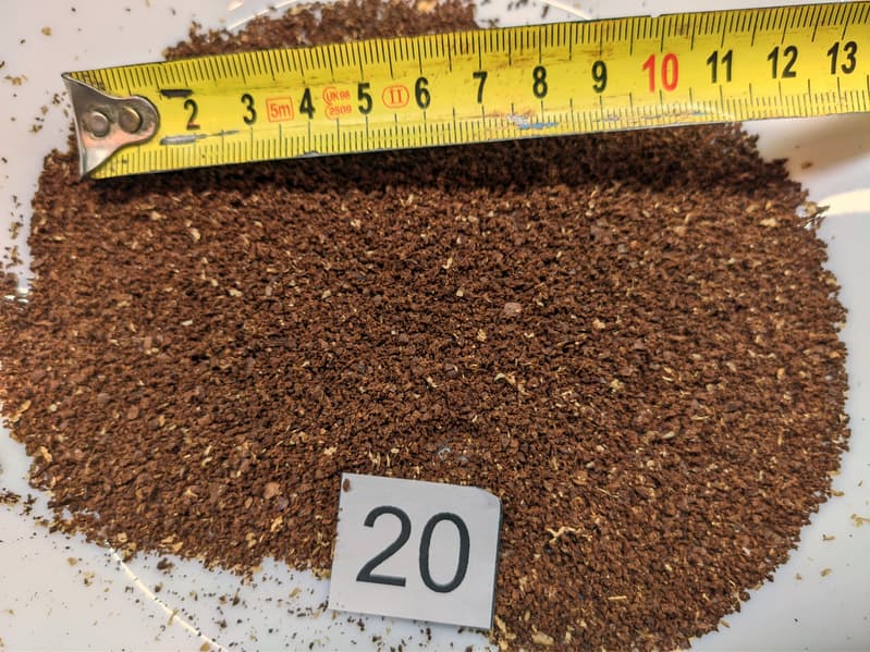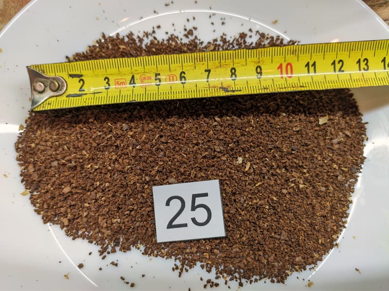 Более крупный помол, в диапазоне 20—25, подойдет для воронок и капельных кофеварок. На фото мы начинаем замечать отдельные крупные частицы, однако в целом качество измельчения остается вполне приемлемым.