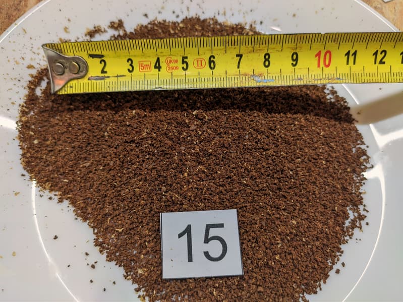 Посмотрим на помол «5». Тут мы видим кофе, помолотый для приготовления в рожке. Конечно, для получения идеального напитка, нам придется приготовить несколько чашек и выбрать наиболее подходящий помол (по нашим прикидкам — от 3 до 7 в зависимости от зерен).