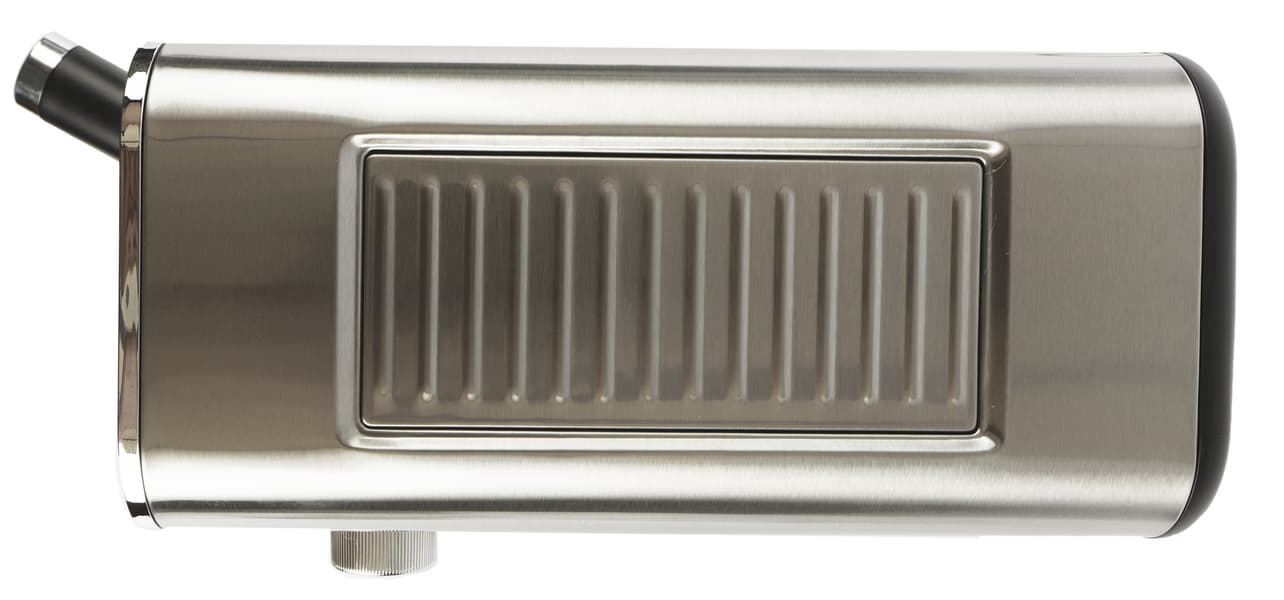 Справа у кофеварки расположена трубка капучинатора, оснащенная пластиковым захватом (чтобы не обжечься) и съемной металлической насадкой-панарелло.