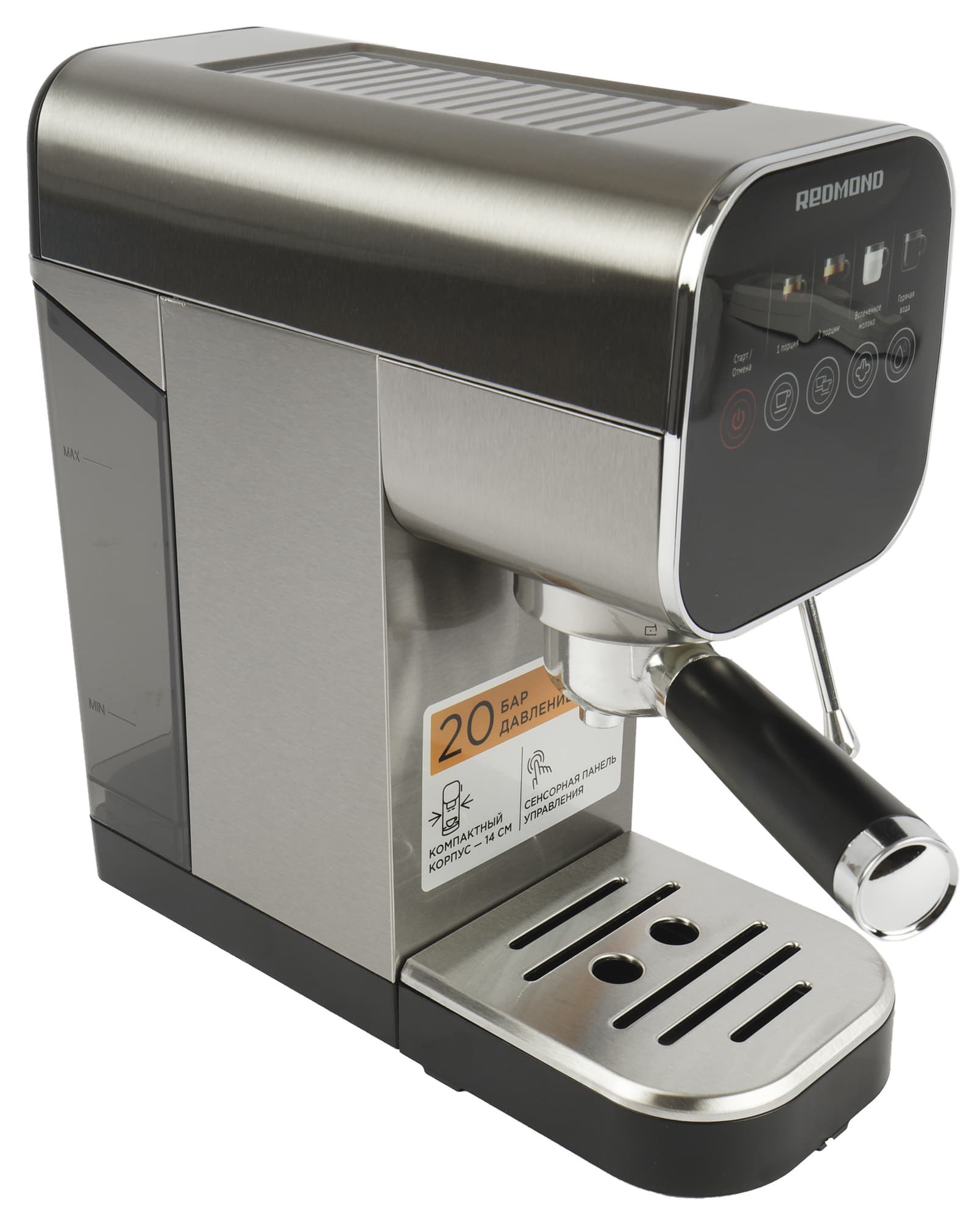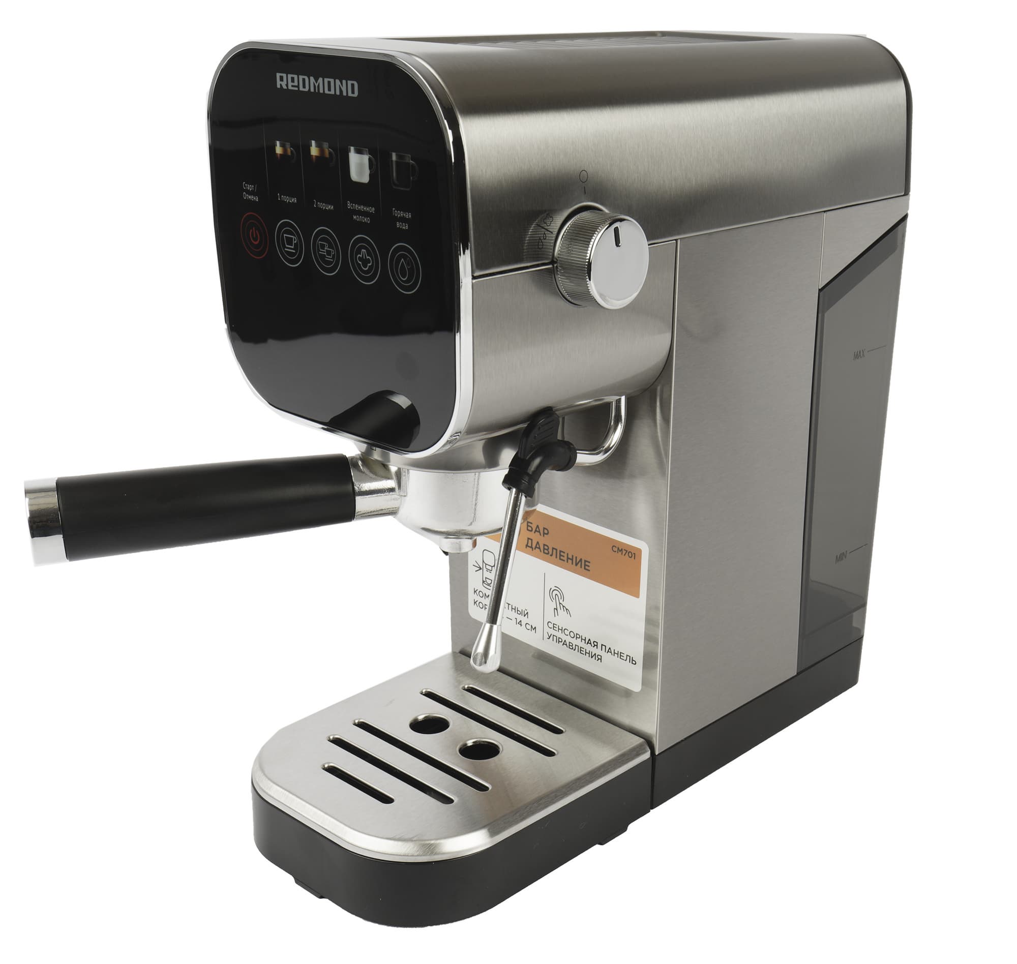 Герой нашего сегодняшнего обзора — рожковая кофеварка Redmond CM701 — отличается элегантным дизайном, наличием нескольких симпатичных технических решений и сенсорной панелью управления. В общем, перед нами кандидат на звание достойной рожковой кофеварки для дома. Давайте протестируем устройство и поймем, так ли это на самом деле.