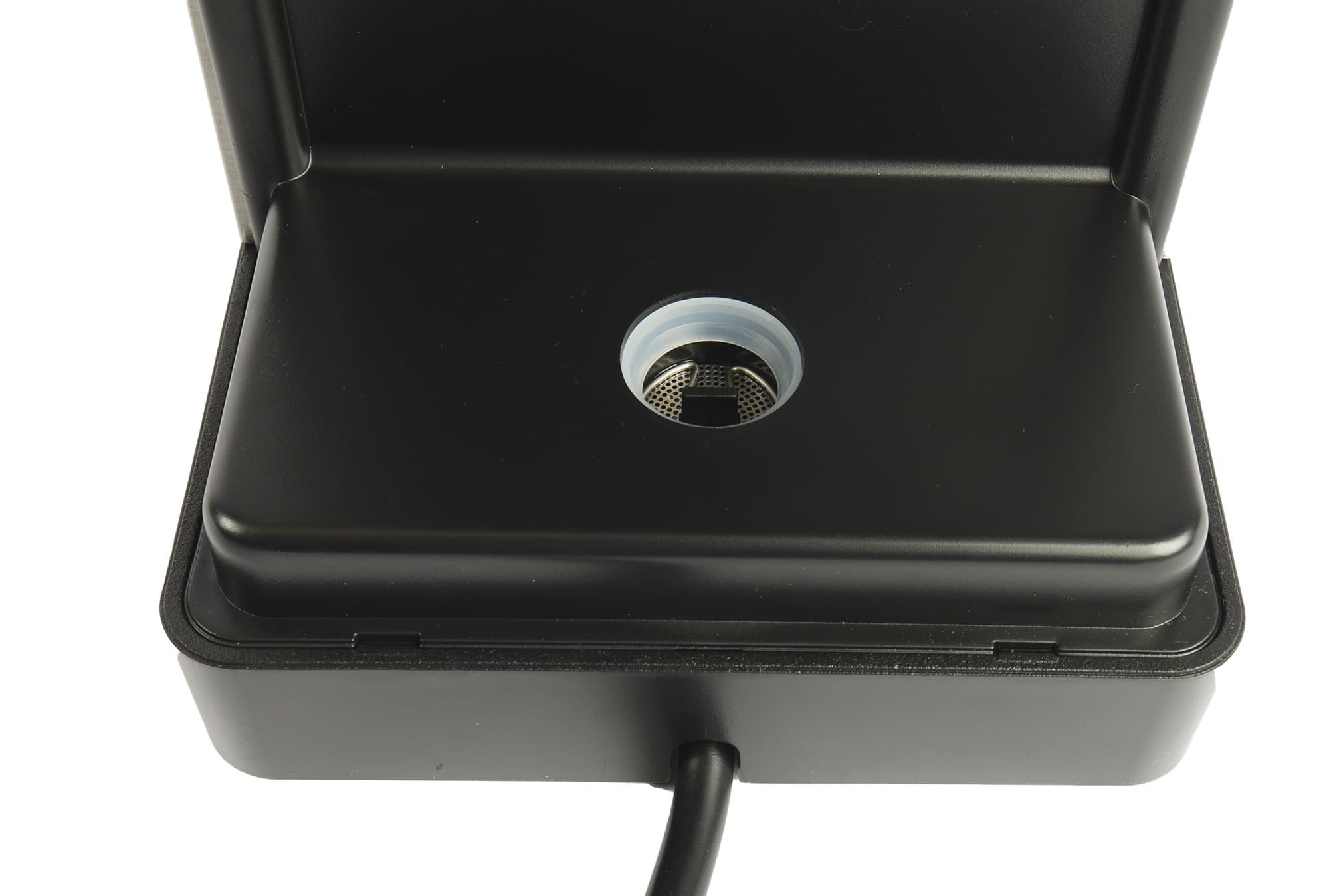 В фильтре под основной перфорированной сеткой есть второе дно, а в нем по центру — небольшое отверстие.