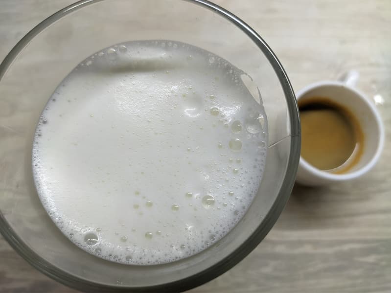 Менее чем через минуту мы получили густую и устойчивую молочную пенку.