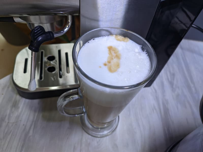 Что касается качества готовых напитков, то одинарный эспрессо нам не особо понравился. Вкус показался плоским, температура невысокой, да и внешний вид оказался посредственным. Но кто нынче готовит одинарный эспрессо, особенно в бюджетных рожковых кофеварках?