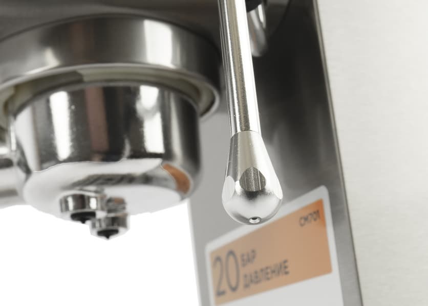 Заявленное давление в 20 бар, как водится, является маркетинговым ходом: для эспрессо больше 9 бар не требуется, и по факту примерно такое давление мы увидим при проходе воды через кофейную таблетку.