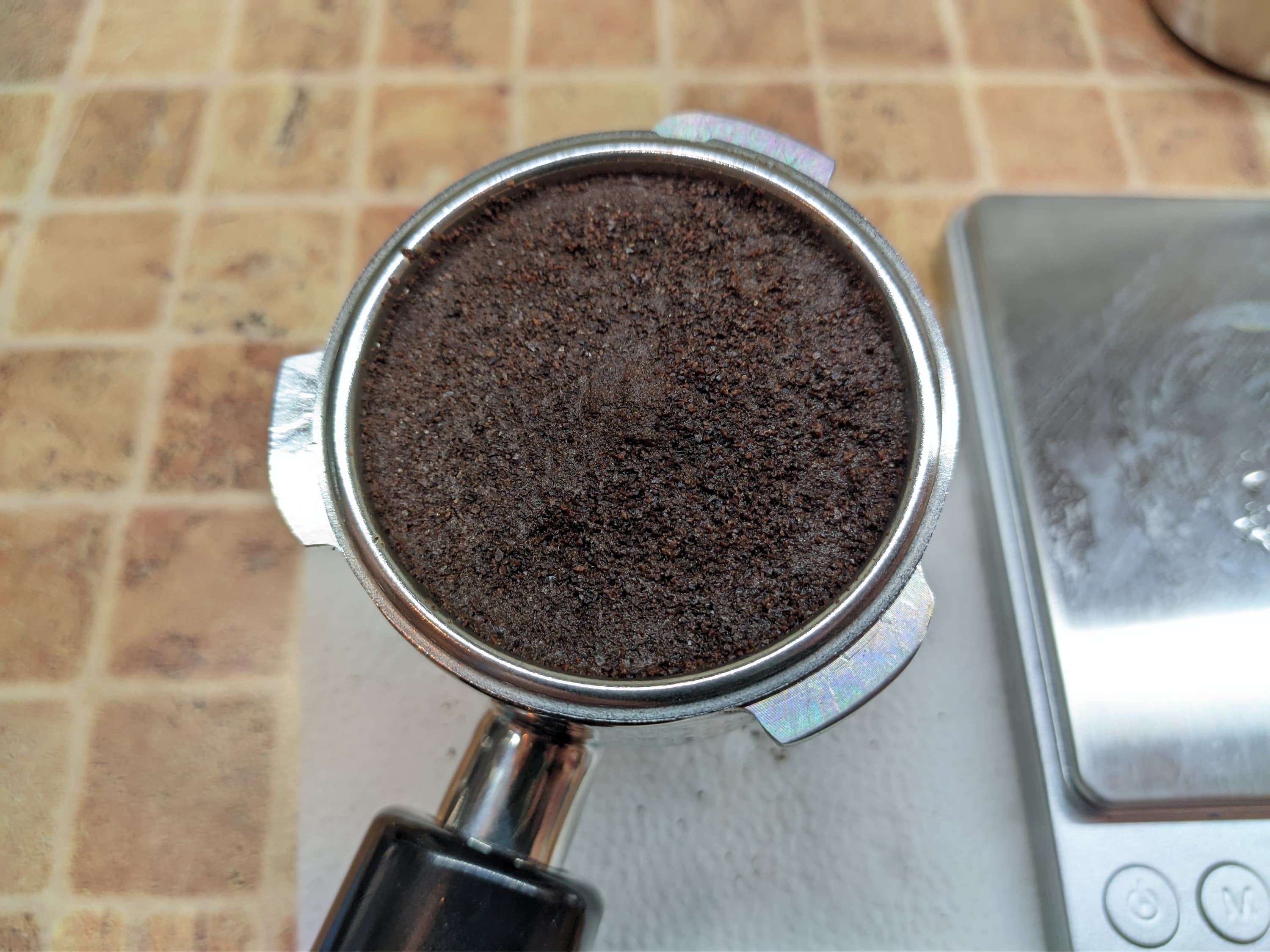 Для тестов мы взяли стандартный помол. Точно такой же мы используем для приготовления эспрессо на полу-профессиональных рожковых кофеварках. Отметим, что наша кофеварка готовит кофе с предсмачиванием. То есть предварительно (примерно в течении 4 секунд) подает горячую воду, и лишь потом начинает пролив основного объема воды.