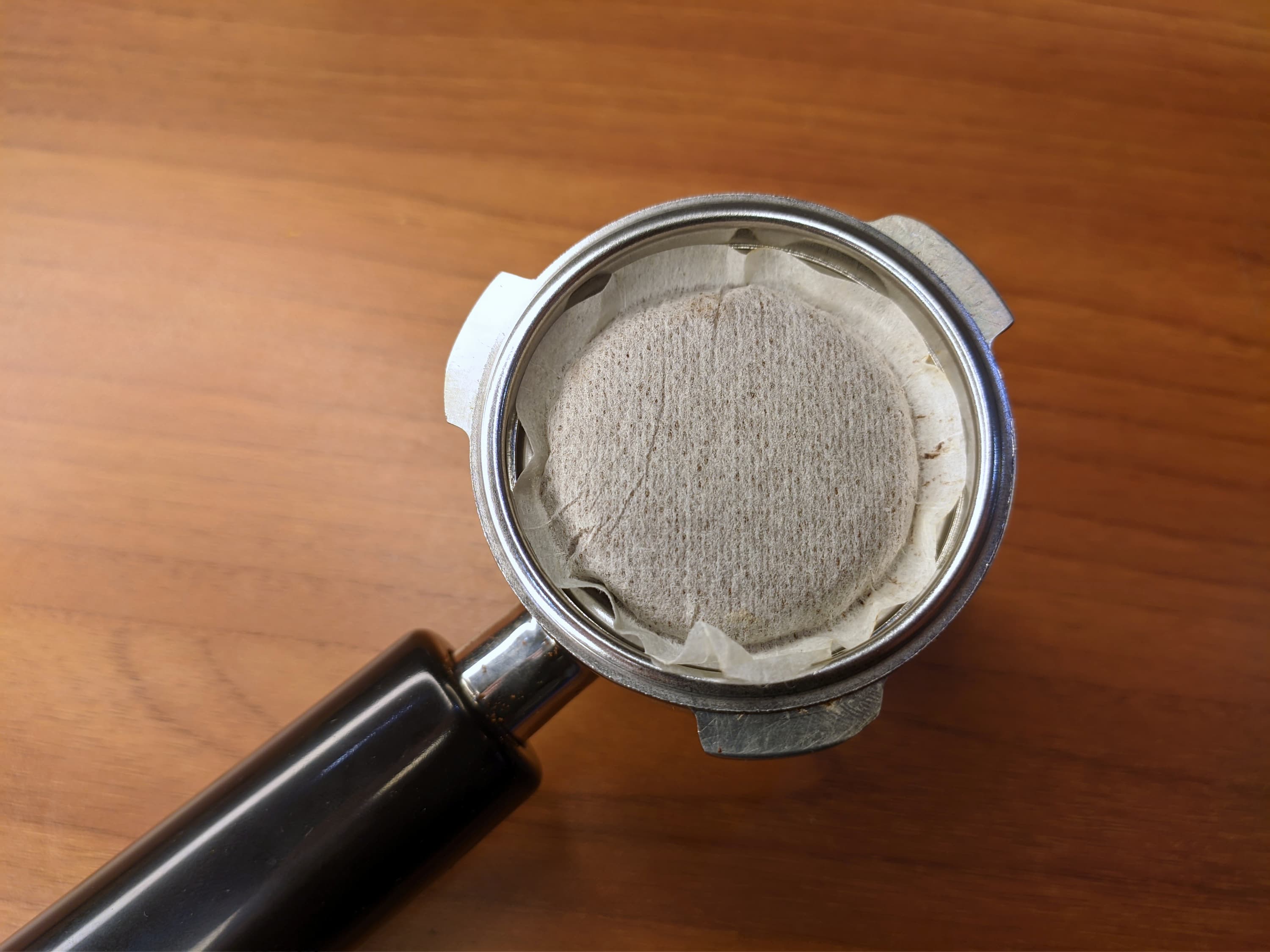 Отработанная кофейная таблетка в нашей кофеварке сыровата, с большим количеством влаги. Вытряхивать ее из фильтра будет не слишком удобно. Так что если фильтр менять не нужно, то проще будет просто промыть рожок вместе с фильтром под проточной водой.