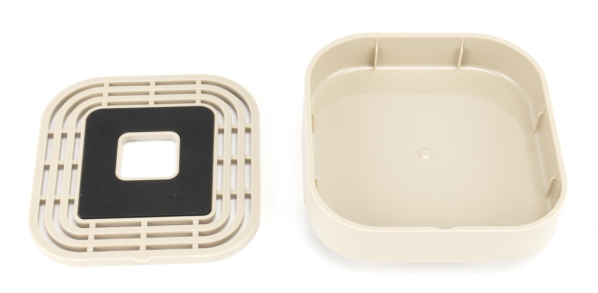 На поддоне располагается пластиковая решетка с резиновой вставкой для предотвращения скольжения кружки и минимизации звуков во время использования.