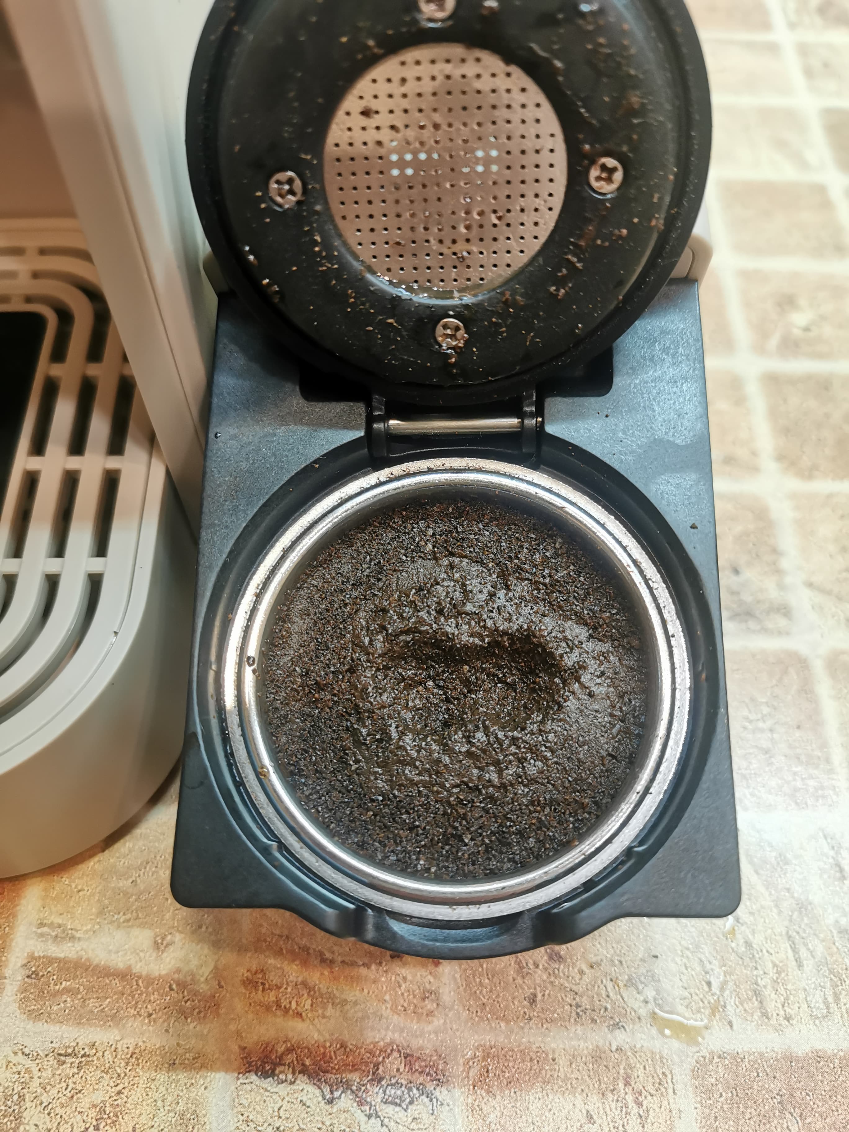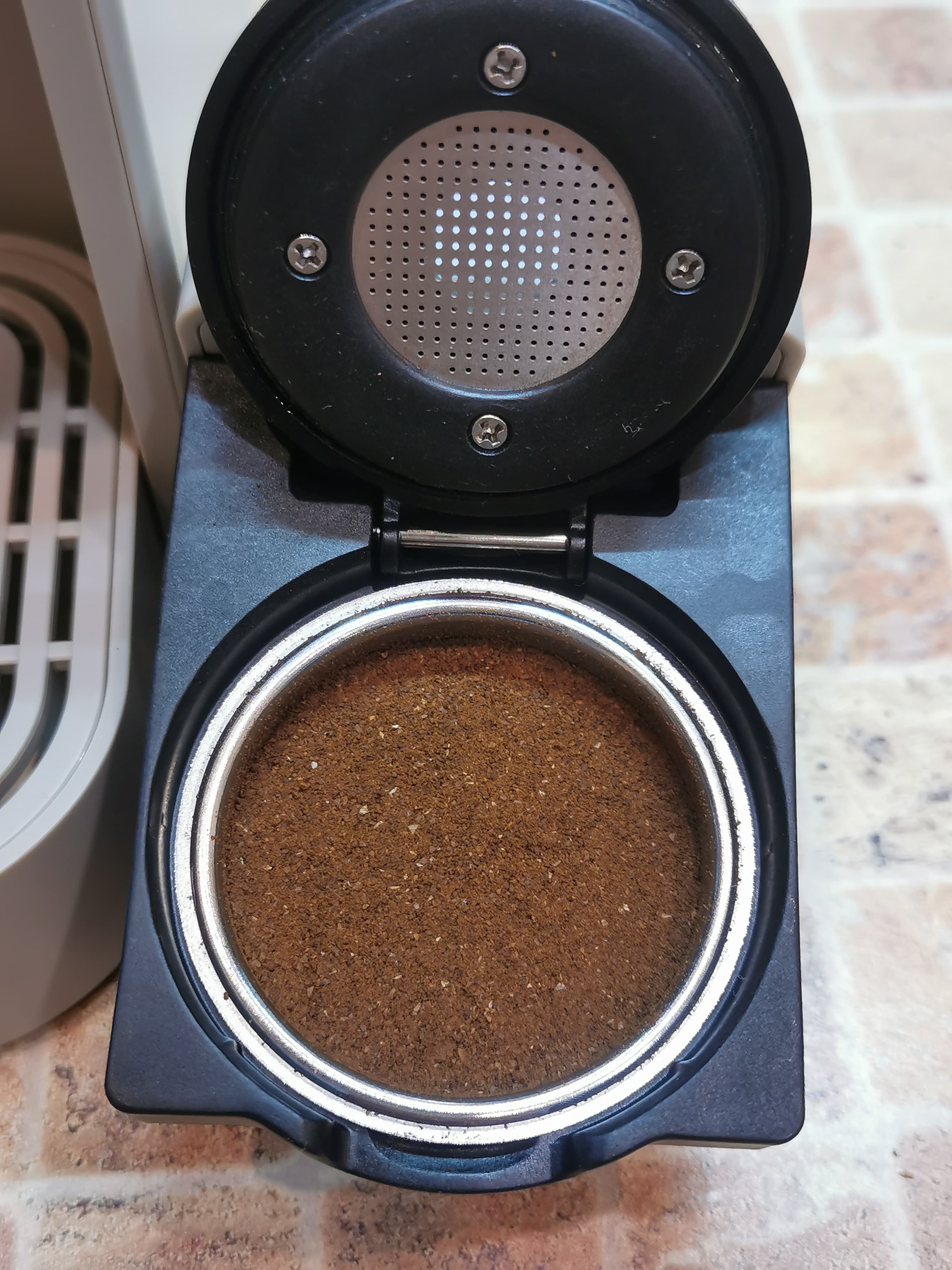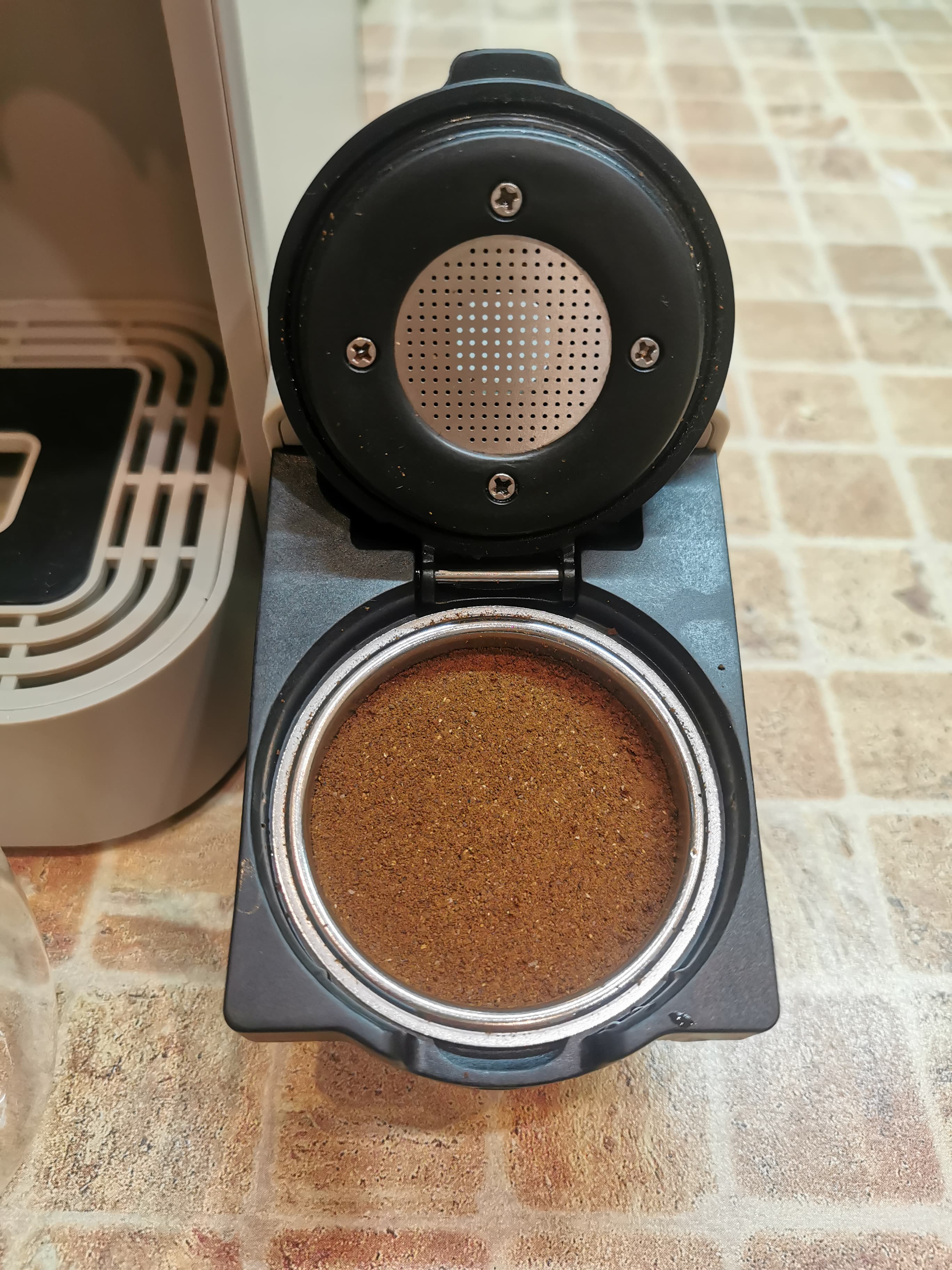 Таблетка подошла по размерам для данного фильтра, и крышка адаптера комфортно закрылась перед его установкой в кофемашину. Мы решили попробовать приготовить порцию эспрессо.