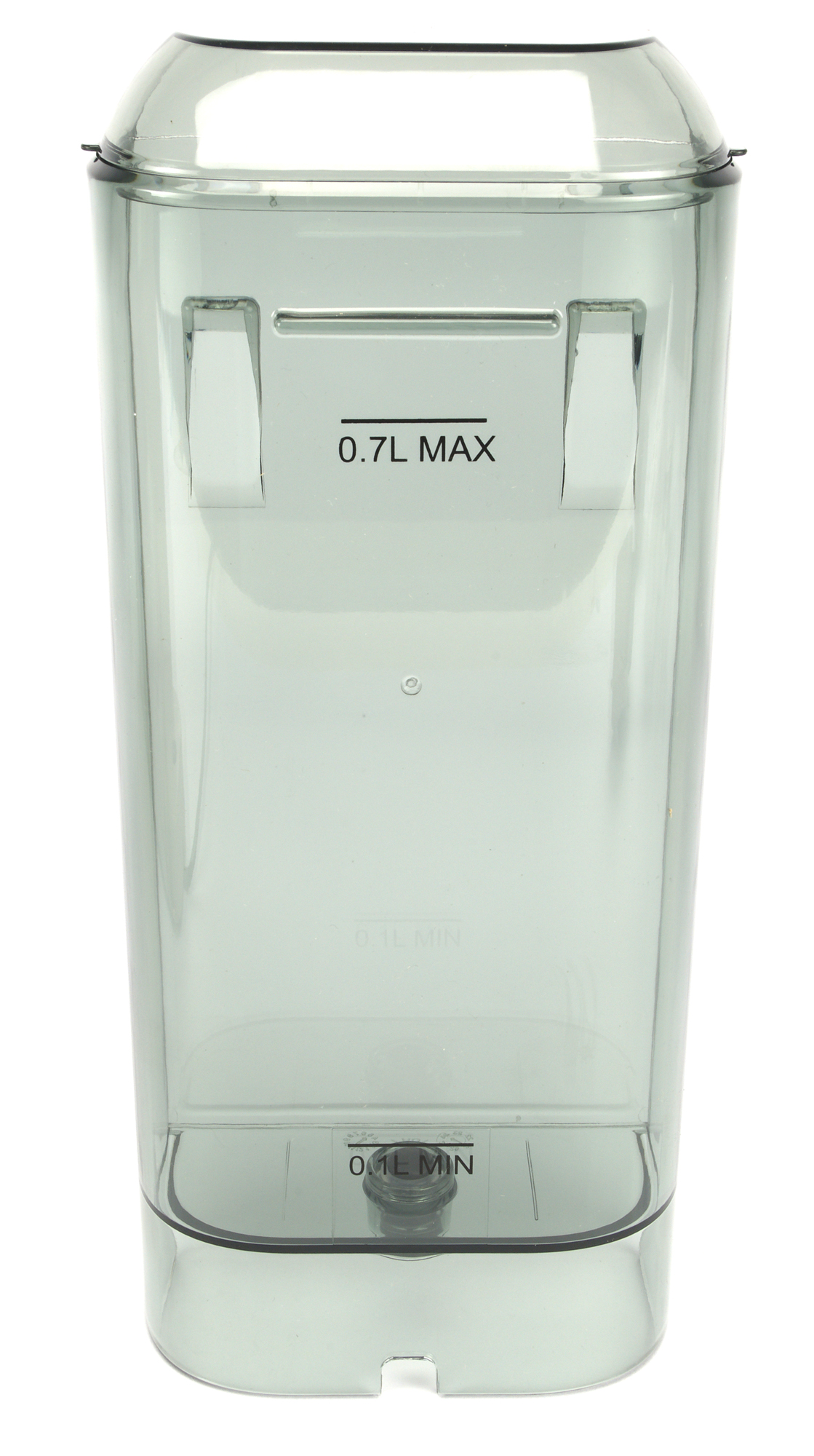Контейнер сделан из прозрачного пластика и имеет объем 0,7 литра — совсем немного. На дне у него расположен клапан, который открывается при установке контейнера на положенное ему место. Таким образом, вода не вытечет из контейнера если его снять с корпуса прибора.