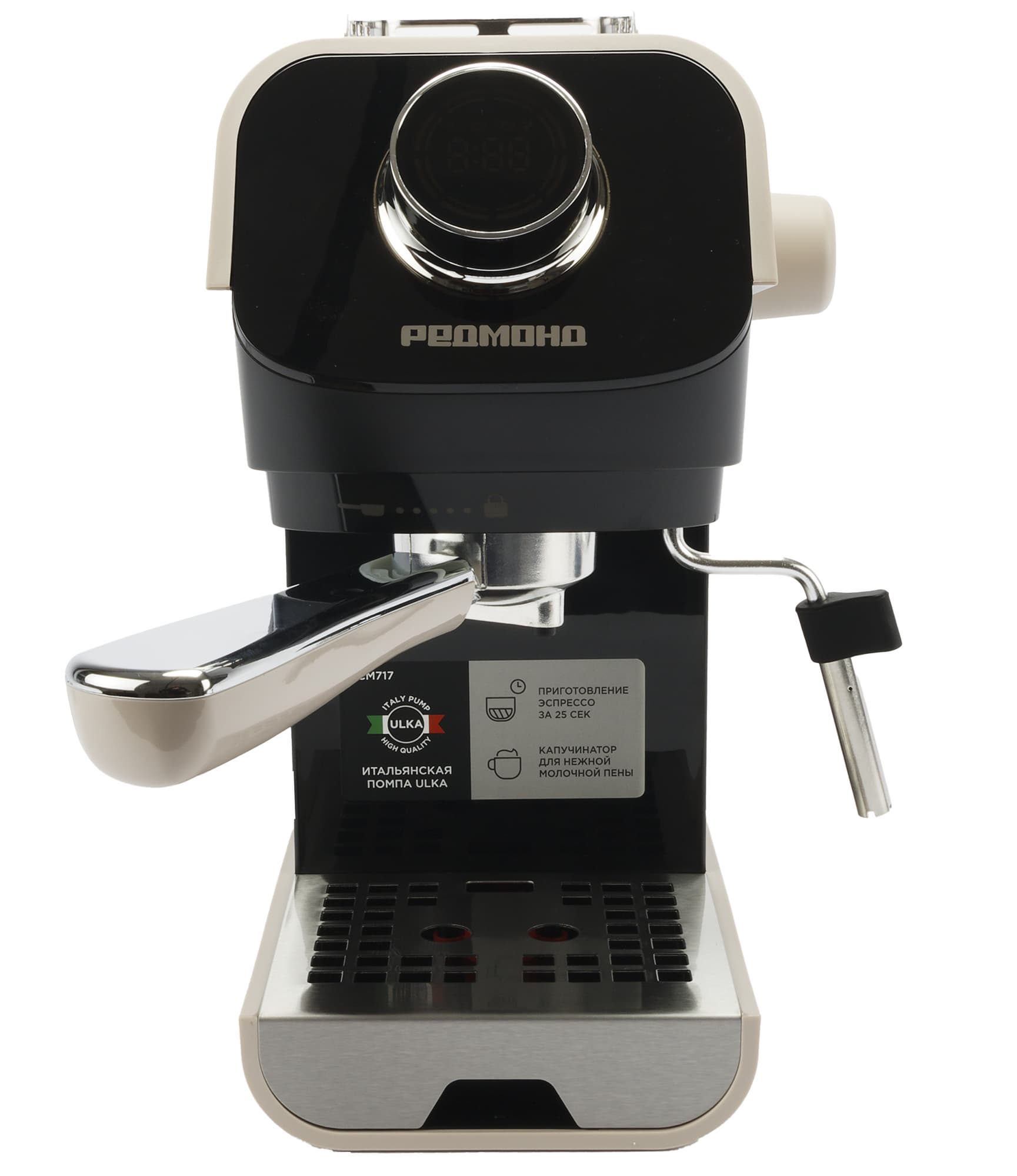 Redmond CM717 — рожковая кофеварка для приготовления эспрессо и напитков на основе молока и молочной пены. Это стандартный прибор для домашнего использования, с которым не должно возникнуть никаких вопросов и проблем. Кофеварка оснащена профессиональной помпой Ulka, благодаря которой вода под давлением проникает сквозь молотый кофе, «впитывая масла и аромат зерен», как утверждает производитель.