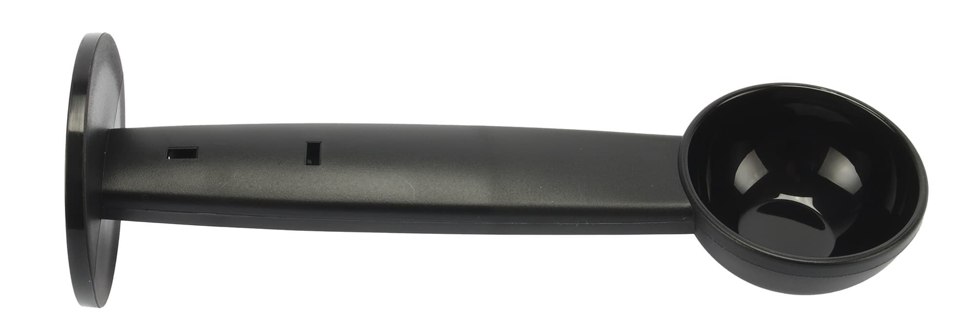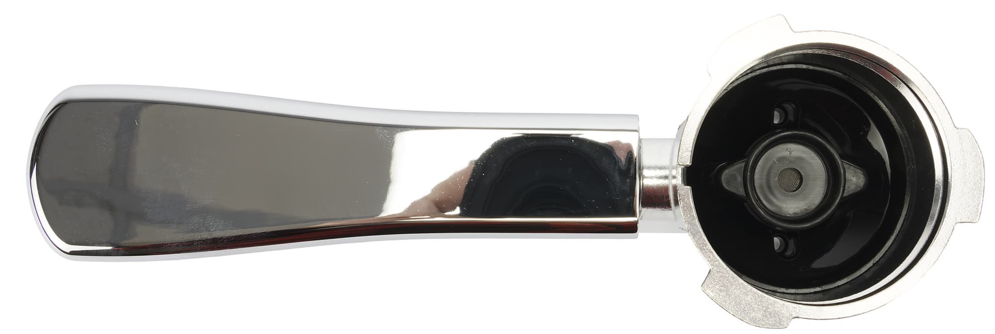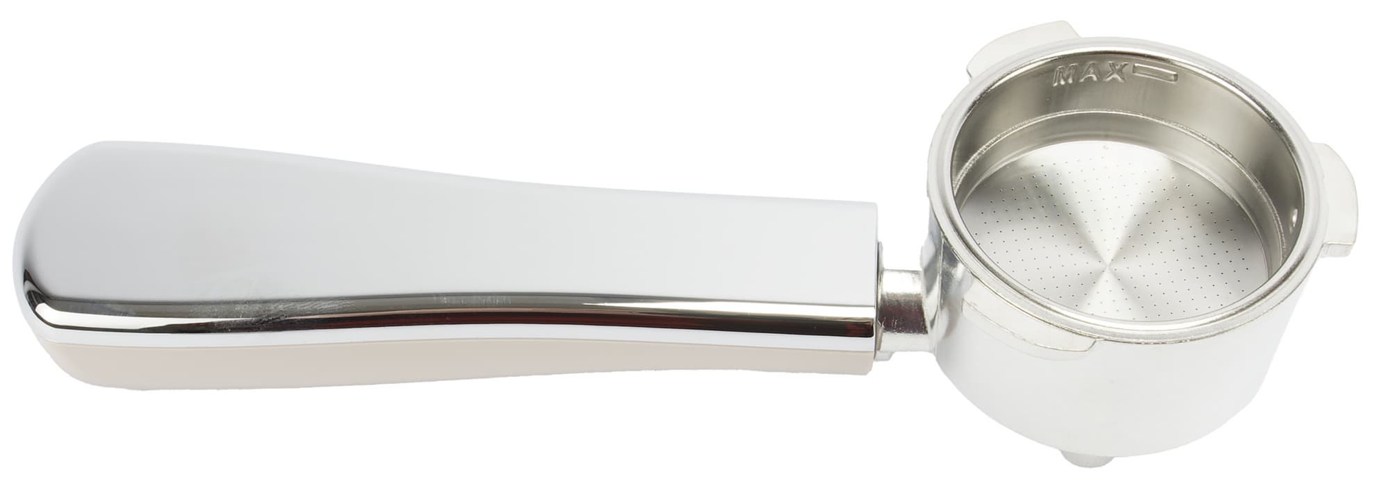 Рожок изготовлен из пластика и металла, имеет два отверстия для выхода кофе.