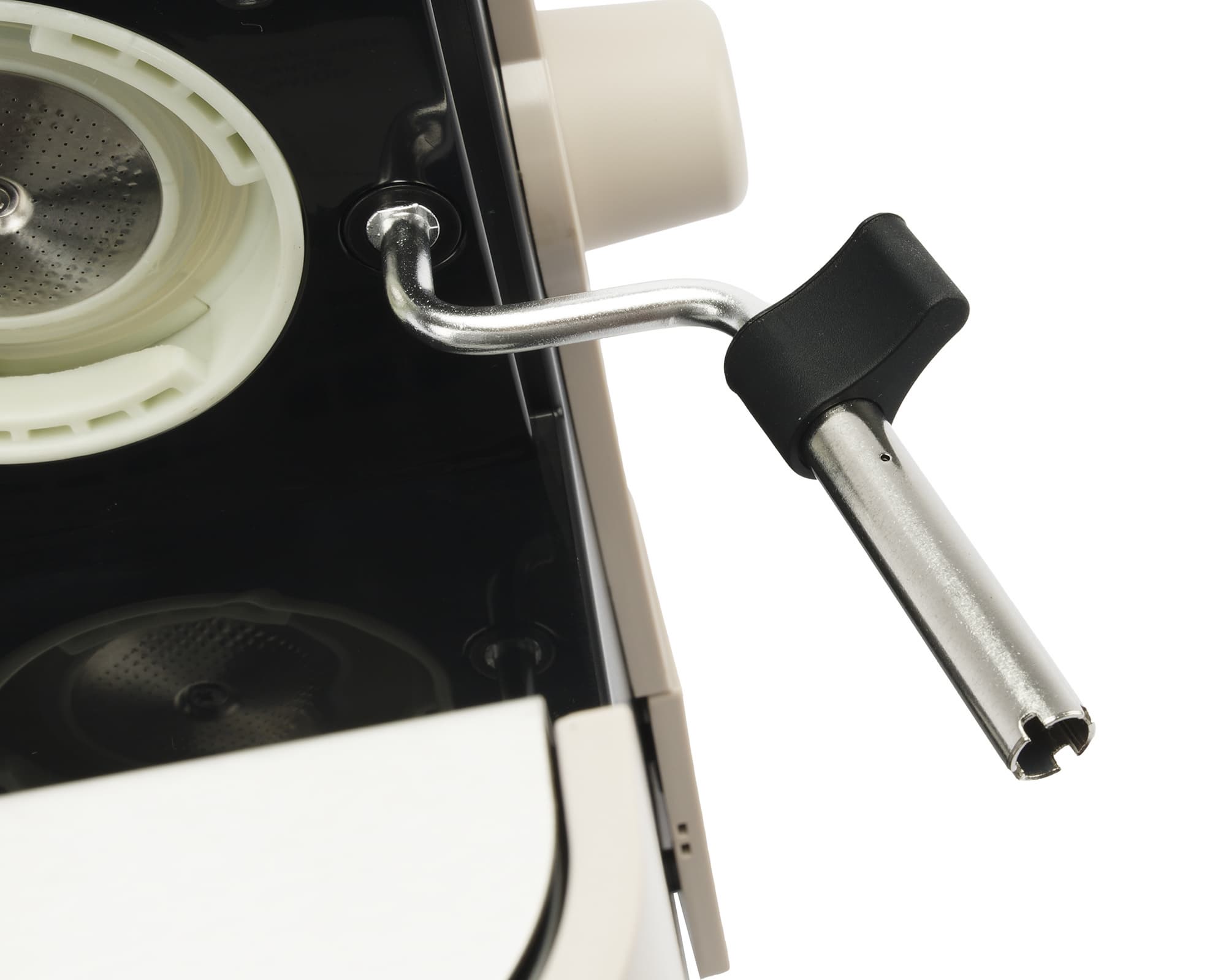 Кроме помпы, кофеварка оснащена капучинатором, что дает возможность экспериментировать с молочно-кофейными напитками типа капучино или латте. «Функция предварительного смачивания поможет раскрыть многогранный вкус кофе», продолжает хвалить кофеварку производитель. Посмотрим, как это всё работает на самом деле.