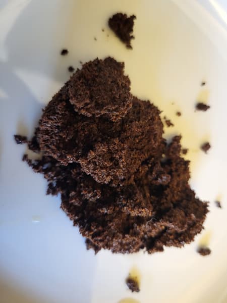 Таблетка, извлеченная из кофеварки, остается довольно влажной и недостаточно спрессованной, что делает ее извлечение из фильтра не самым удобным процессом. Мы пользовались ложкой, хотя промыть фильтр под струей воды оказывается намного удобнее (учитывая, что для этого можно не извлекать фильтр из рожка).