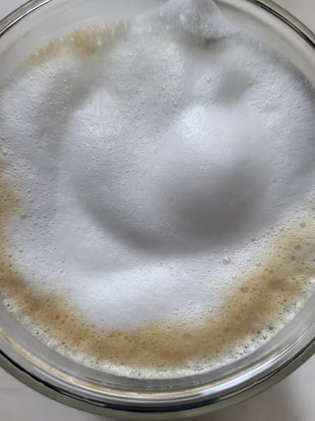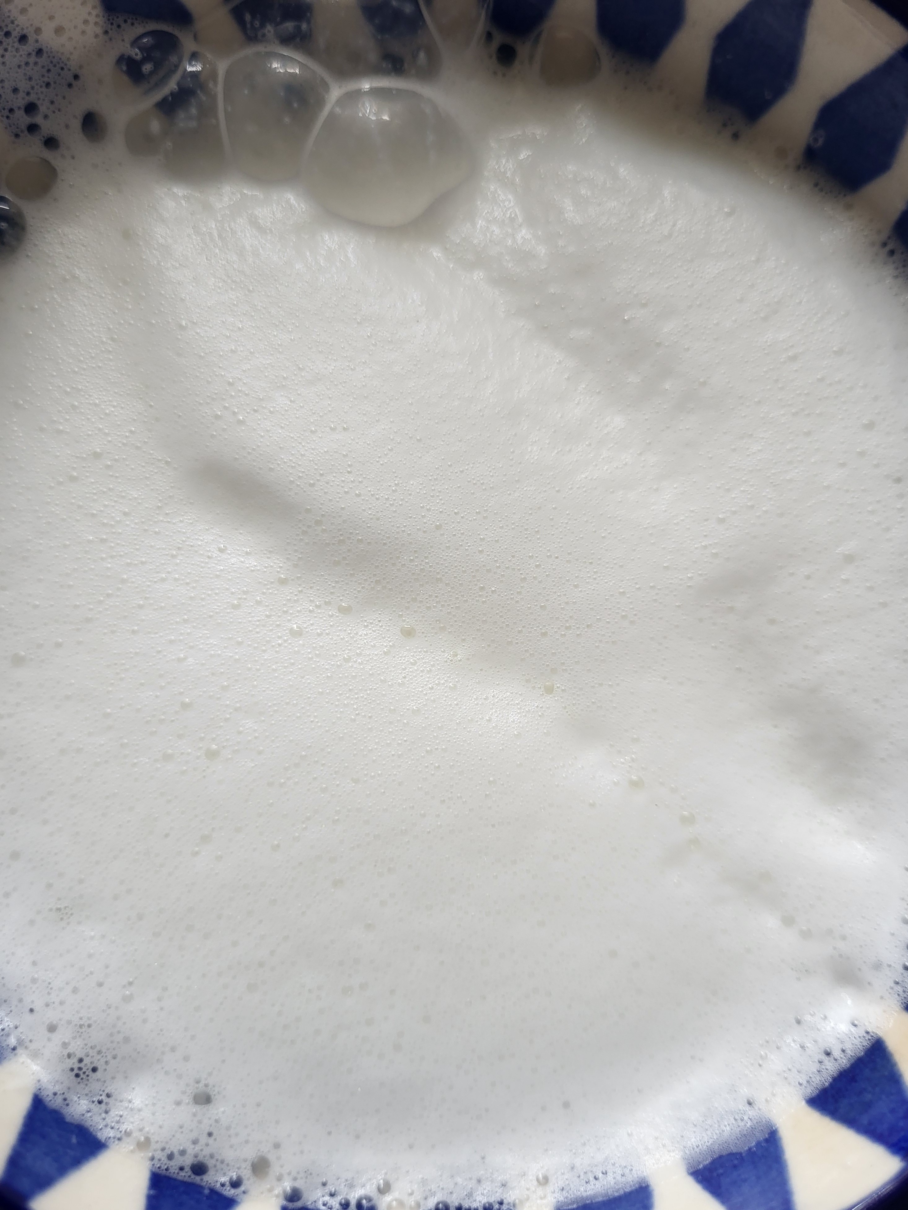 Потом мы попробовали взбивать пену чуть дольше. На фото ниже: молочная пена через 50 секунд взбивания — плотная, крепкая и достаточно устойчивая.