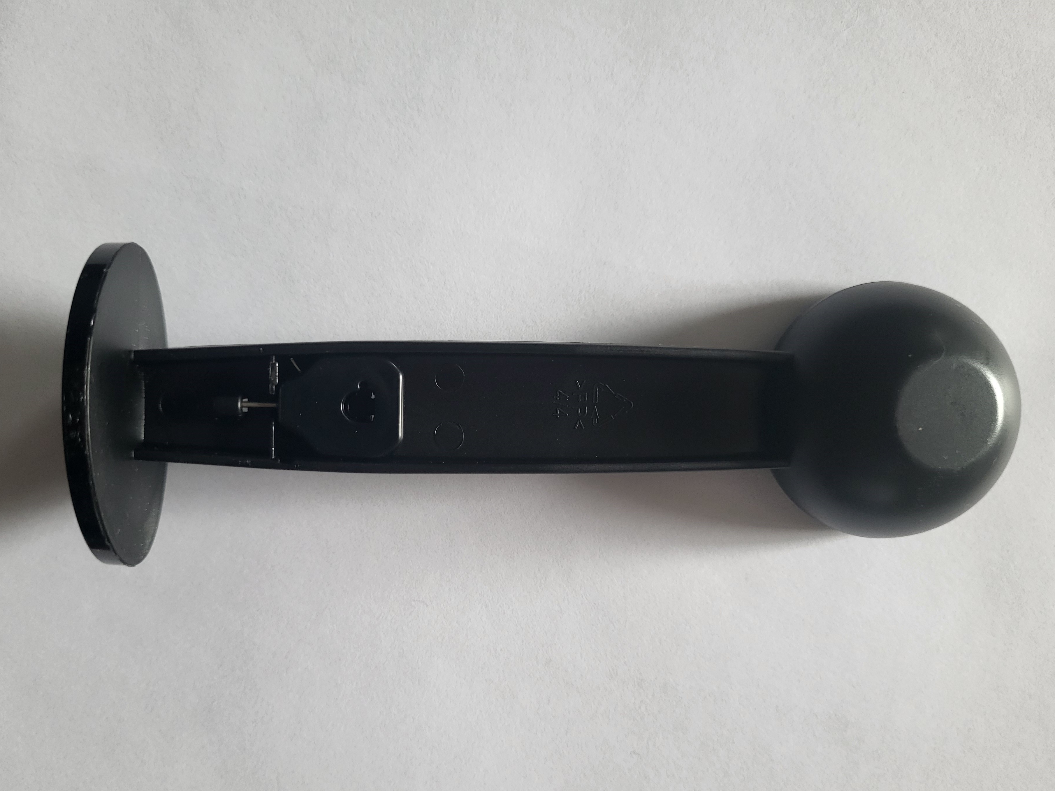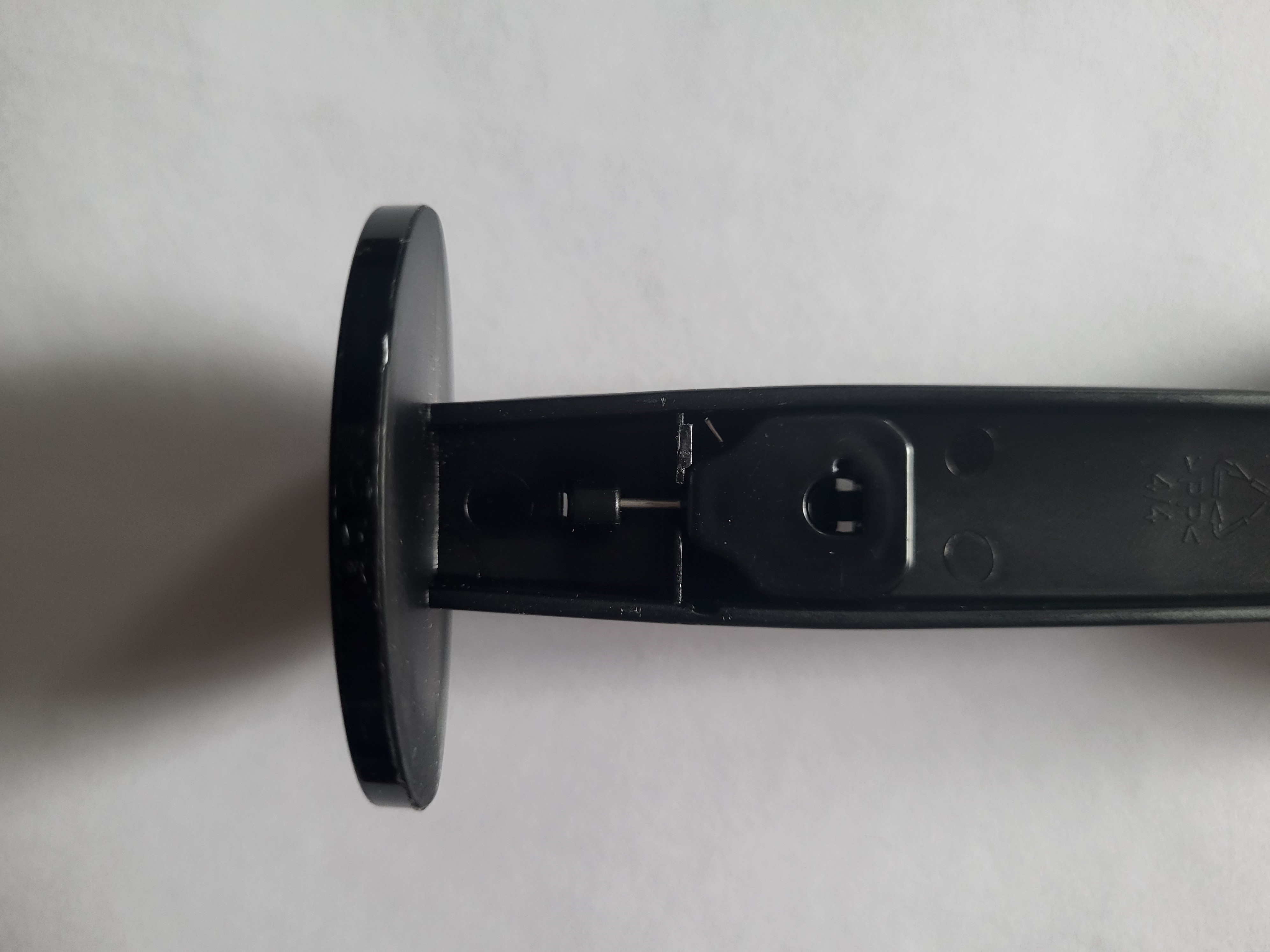 Механизм крепления рожка оснащен направляющими пазами для точной фиксации и интуитивно понятными значками, указывающими правильное положение при установке и повороте для надежного закрепления.