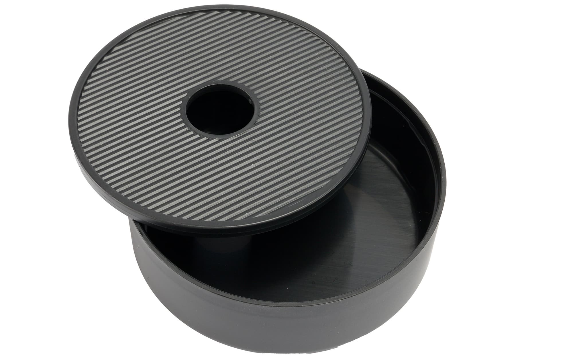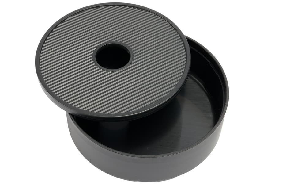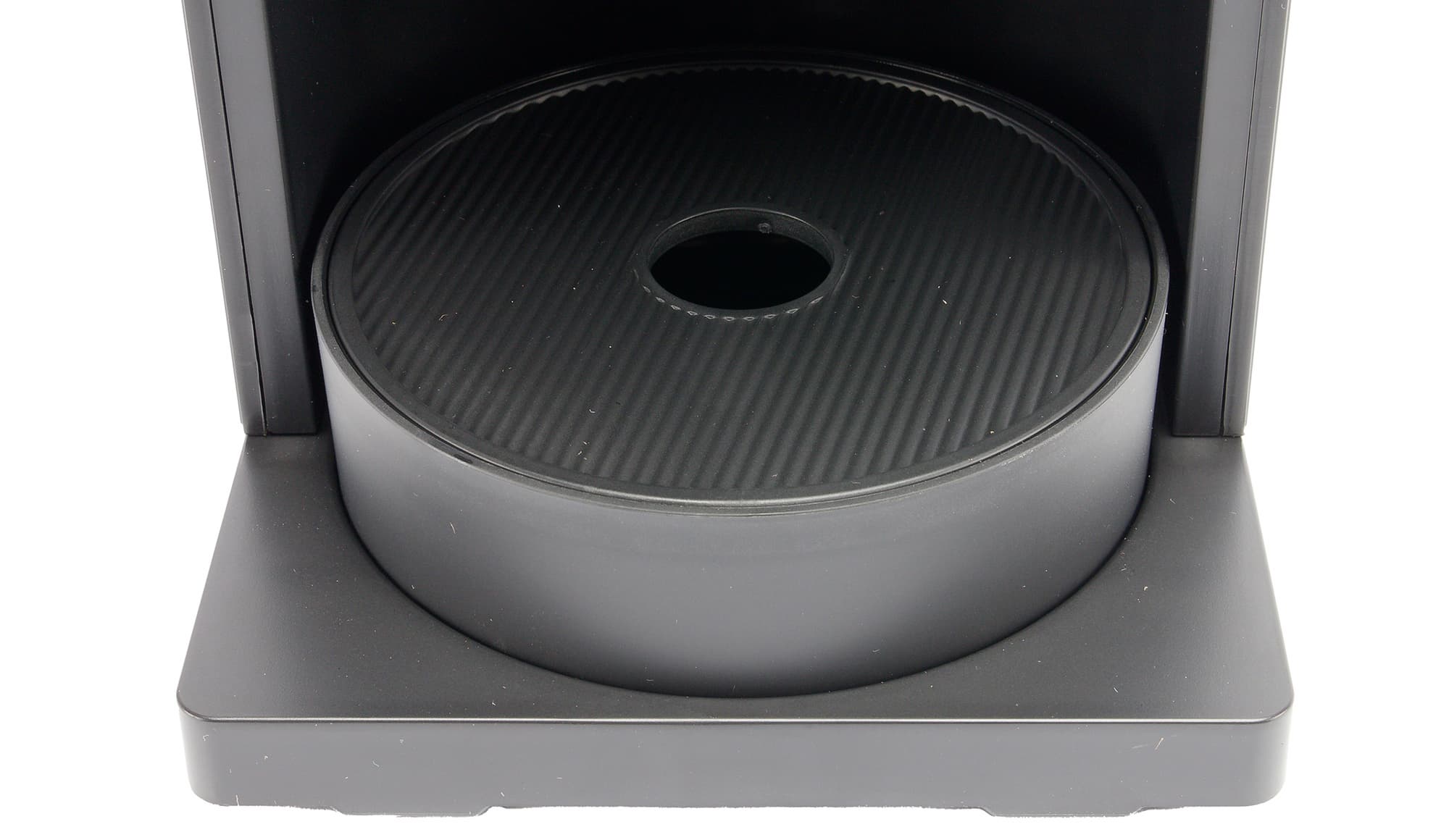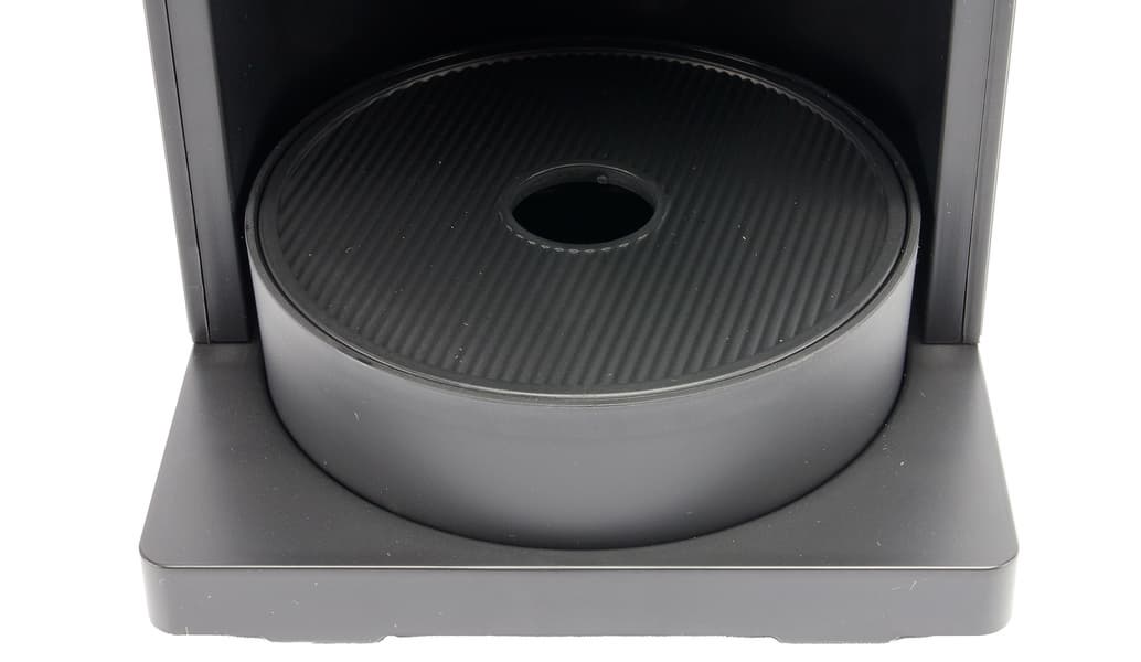 Чашка размещается на съемной решетке, через отверстия которой излишки воды или кофе стекают в поддон.