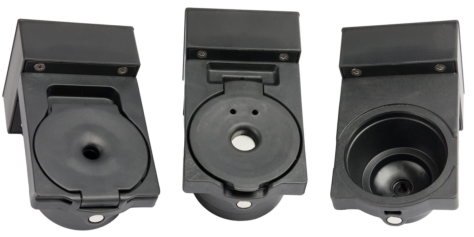В комплект входит три пластиковых адаптера: для капсул Nespresso, Dolce Gusto и для молотого кофе.