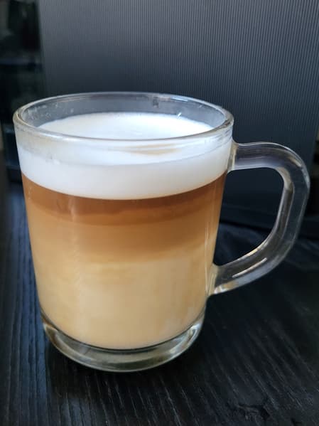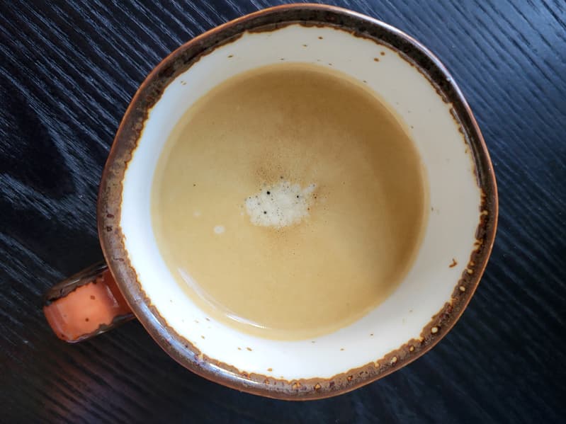 На фото ниже можно увидеть немного молочной пены и то, как молоко смешалось с эспрессо.