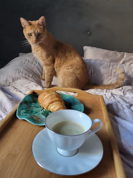 Пить кофе в постели нам, конечно, мешал кот, потрясенный таким неформатом.