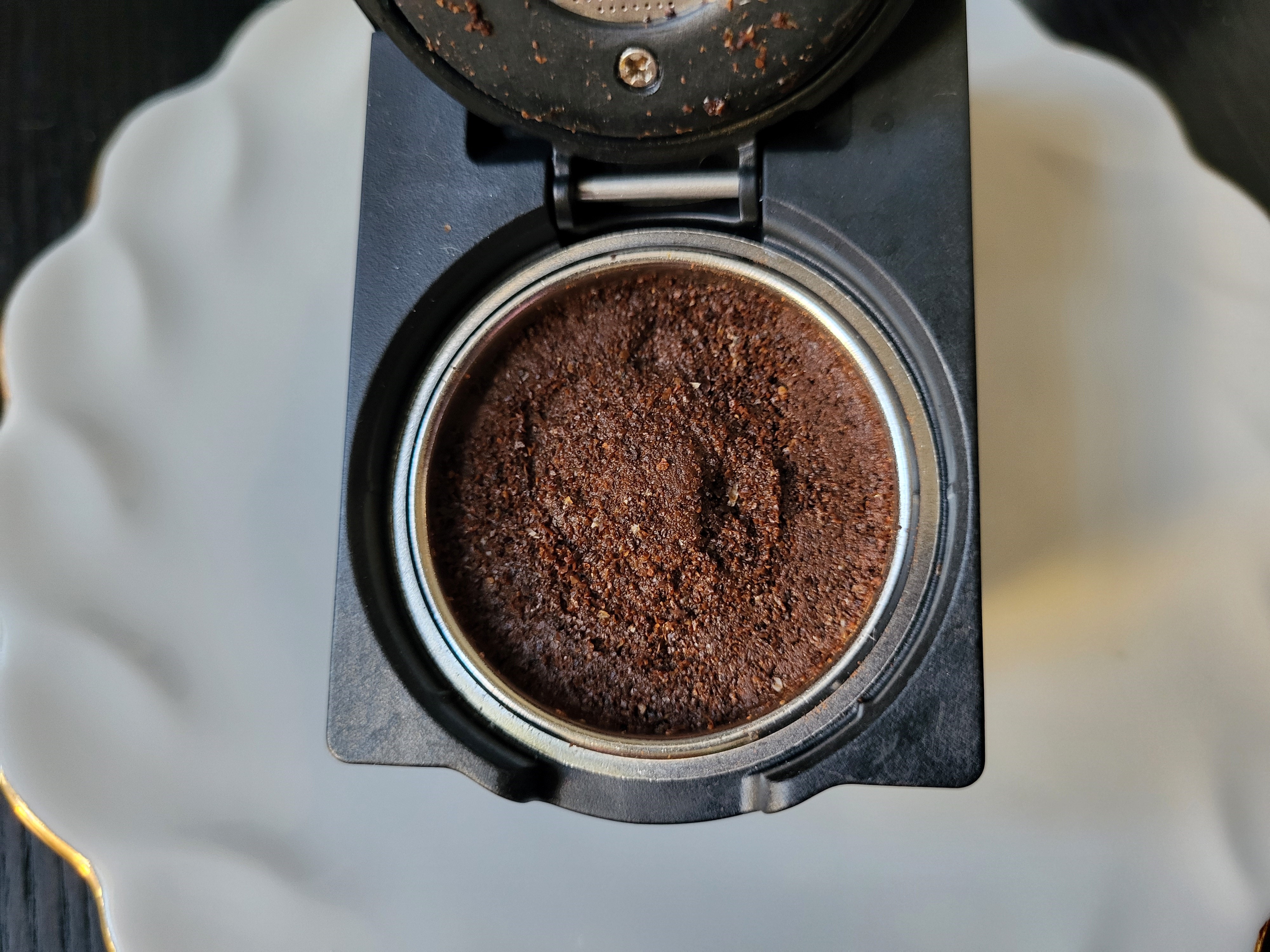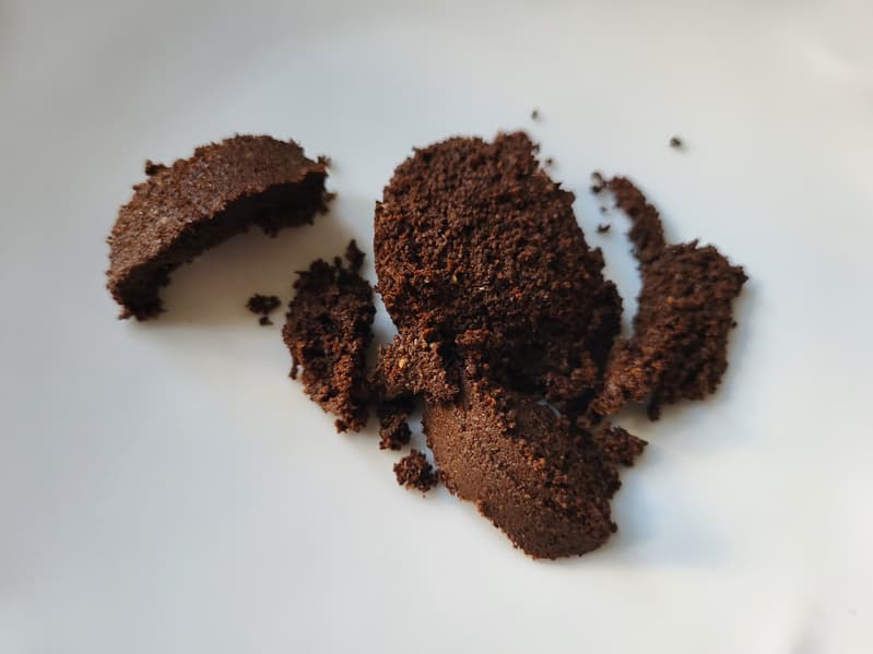 При использовании молотого кофе в фильтр помещается 8 г кофе. После приготовления отработанная таблетка получилась плотной и достаточно сухой. Извлечь ее из фильтра вручную оказалось непросто — мы воспользовались ложкой.
