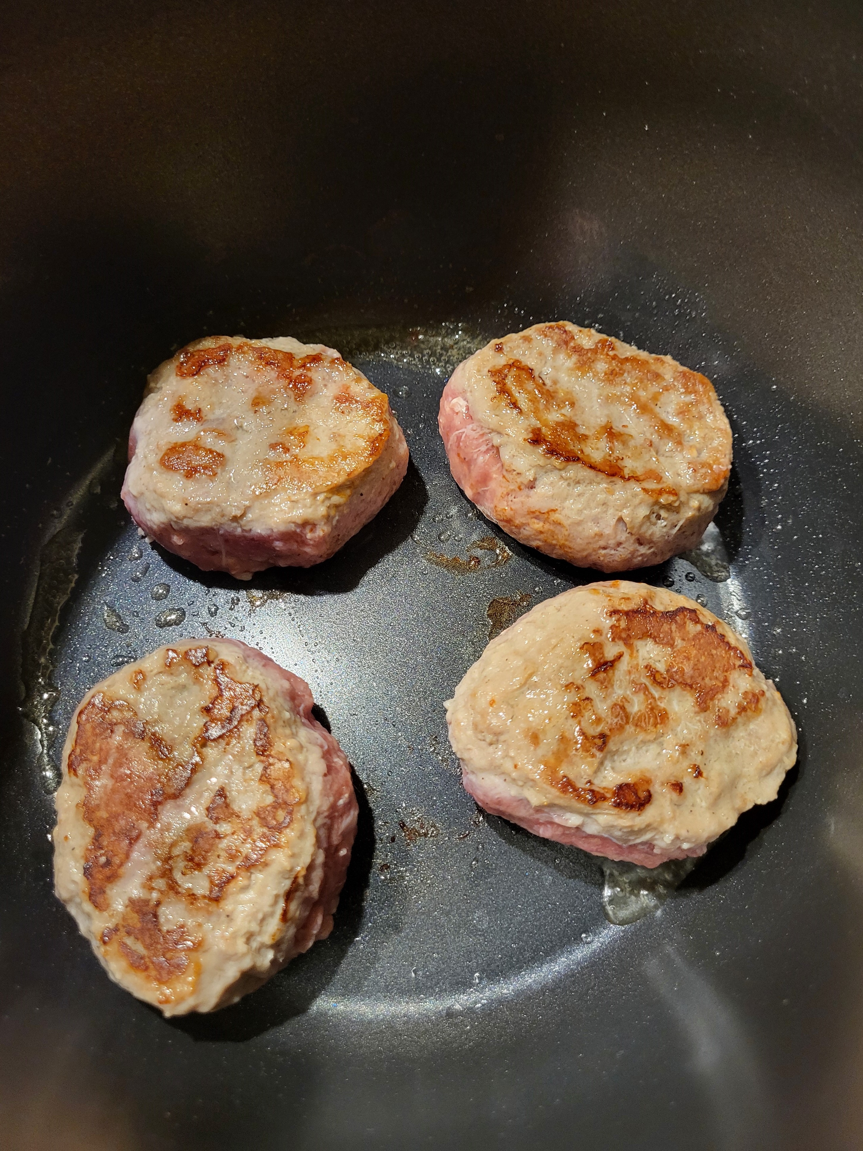 Обжарили котлеты с одной стороны в течение 4 минут (фото ниже) и с другой стороны в течение такого же времени.