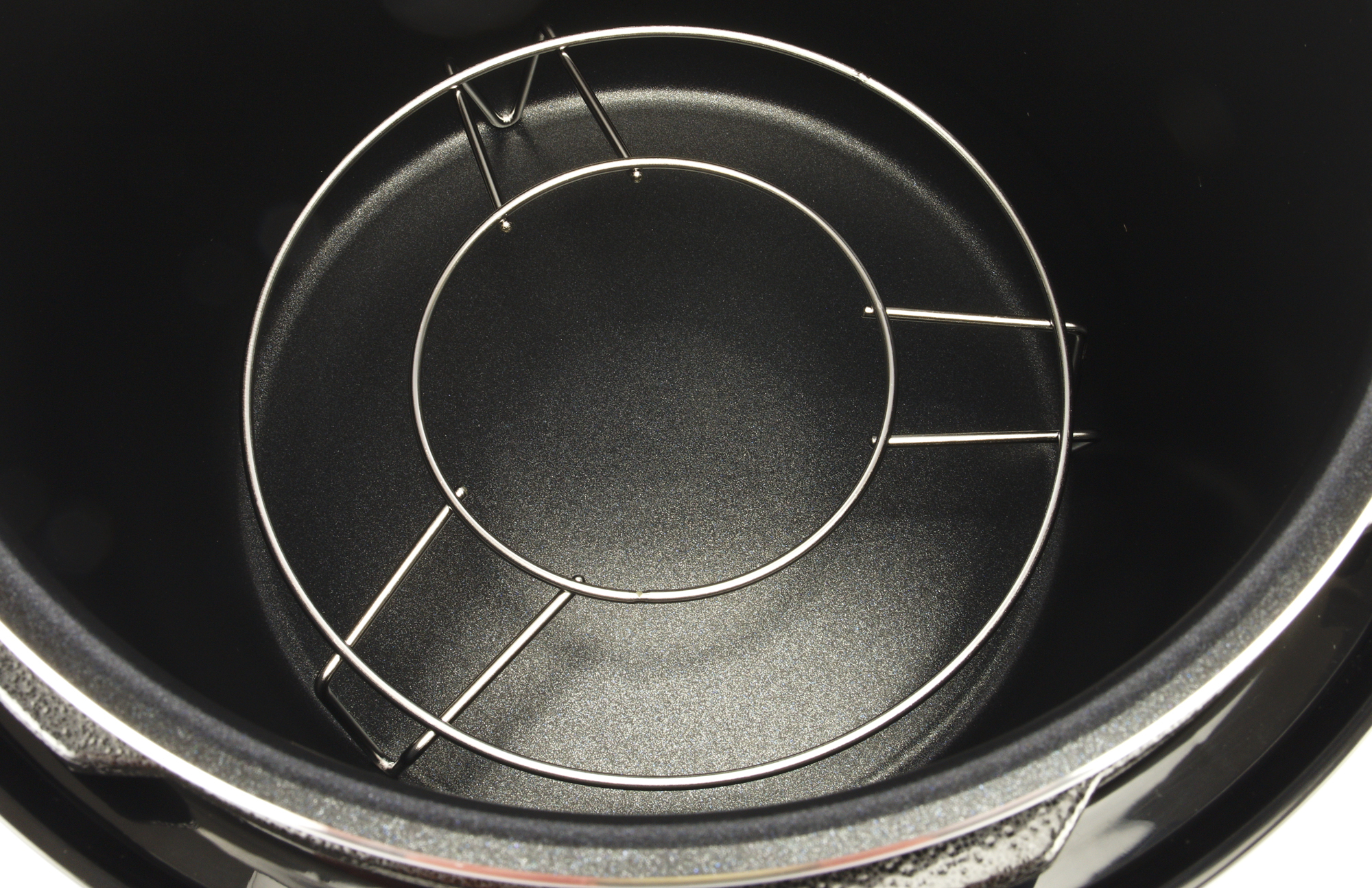 Внутрь чаши свободно устанавливается подставка для приготовления на пару́, на которую сверху ставится контейнер для приготовления на пару́.