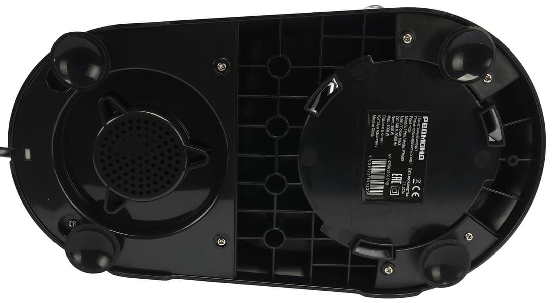 Redmond FM603 собирается точно так же, как и его коллеги-миксеры: чаша вставляется в гнездо и фиксируется поворотом по часовой стрелке. Насадки и крышка закрепляются тем же способом.