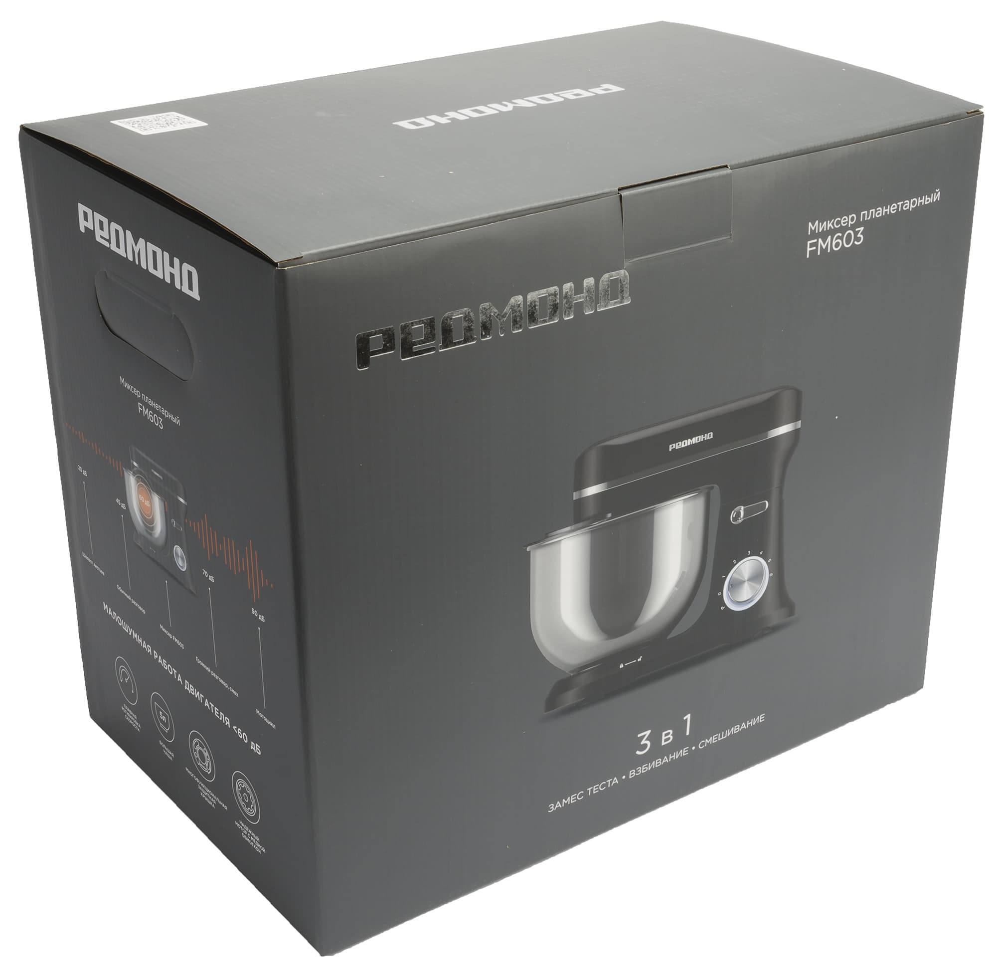 Сегодня мы обозреваем и тестируем классический планетарный миксер Redmond FM603. В комплекте к нему идут 3 привычные съемные насадки — крюк для замешивания теста, венчик для взбивания и лопатка для смешивания мягких продуктов. У прибора 6 скоростей, имеется импульсный режим, а дежа из нержавеющей стали имеет объем 5 литров.