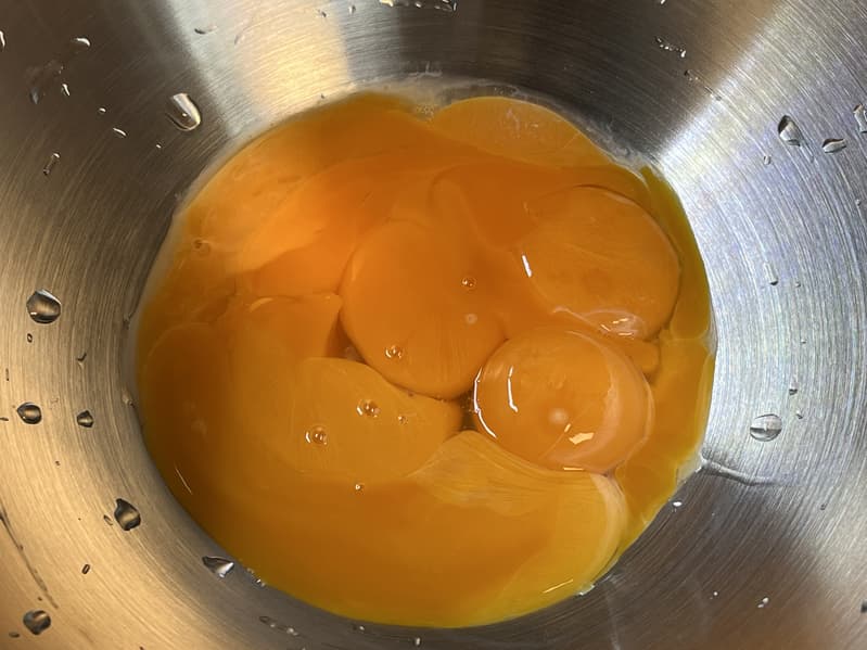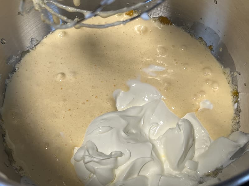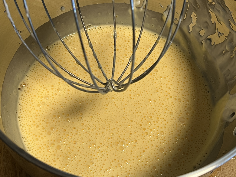 Желтки отделили от белков и взбили их с сахаром. Затем туда же добавили сметану и ванильный сахар.